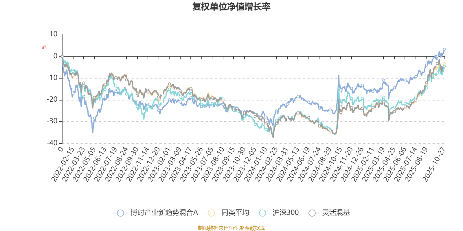 截至10月27日,博时产业新趋势混合A近三个月复权单位净值增长率为10.87%,位于同类可比基金708/1287;近半年复权单位净值增长率为20.64%,位于同类可比基金744/1287;近一年复权单位净值增长率为19.88%,位于同类可比基金700/1287;近三年复权单位净值增长率为33.01%,位于同类可比基金300/1286。