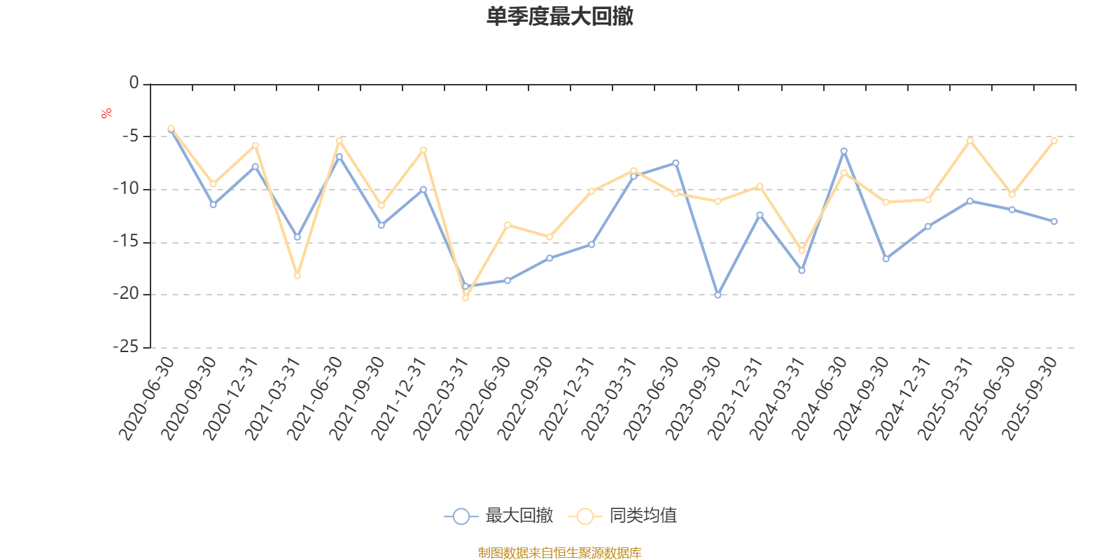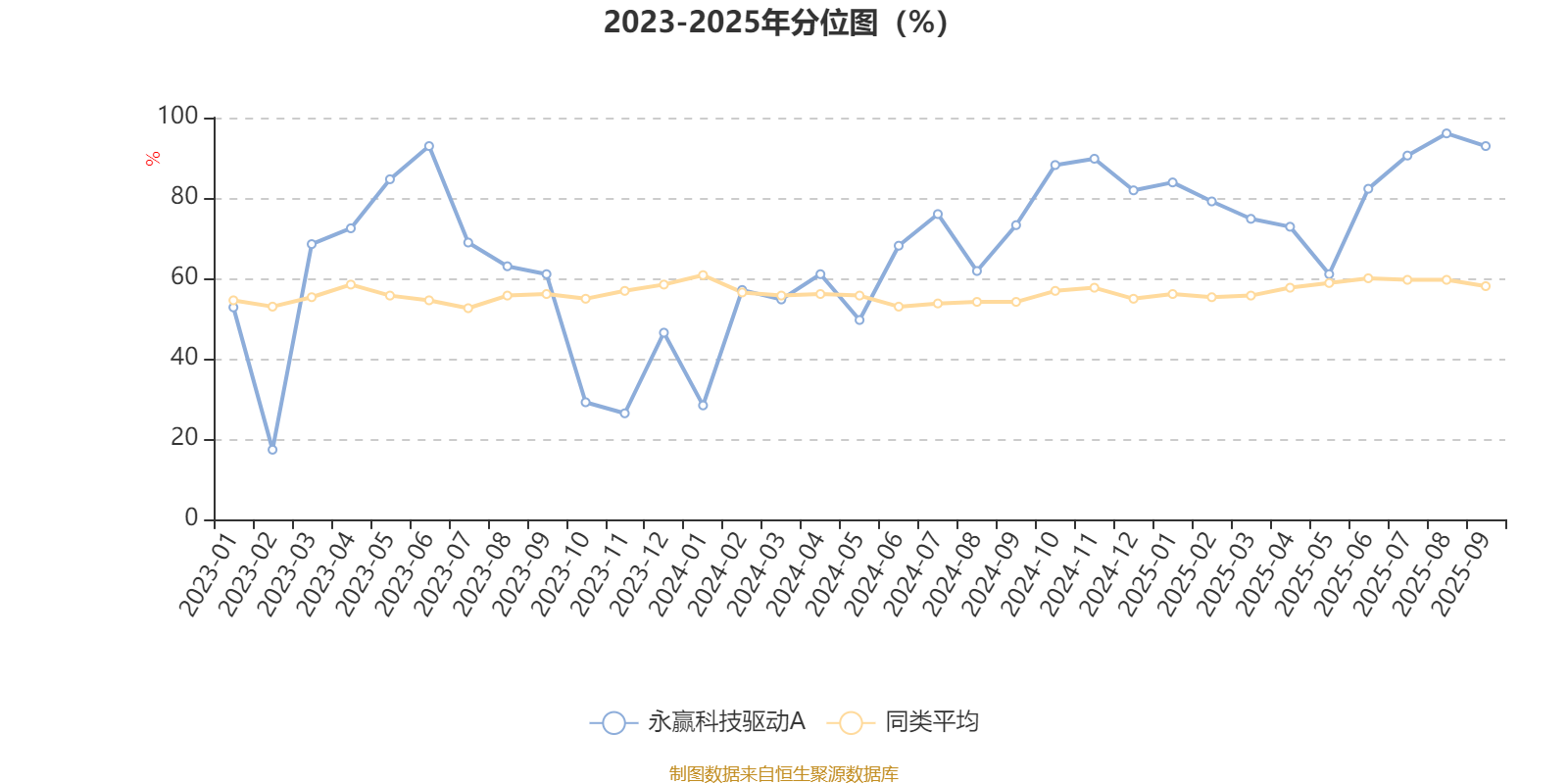 通过所选区间该基金净值增长率分位图,可以观察该基金与同类基金业绩比较情况。图为坐标原点到区间内某时点的净值增长率在同类基金中的分位数。