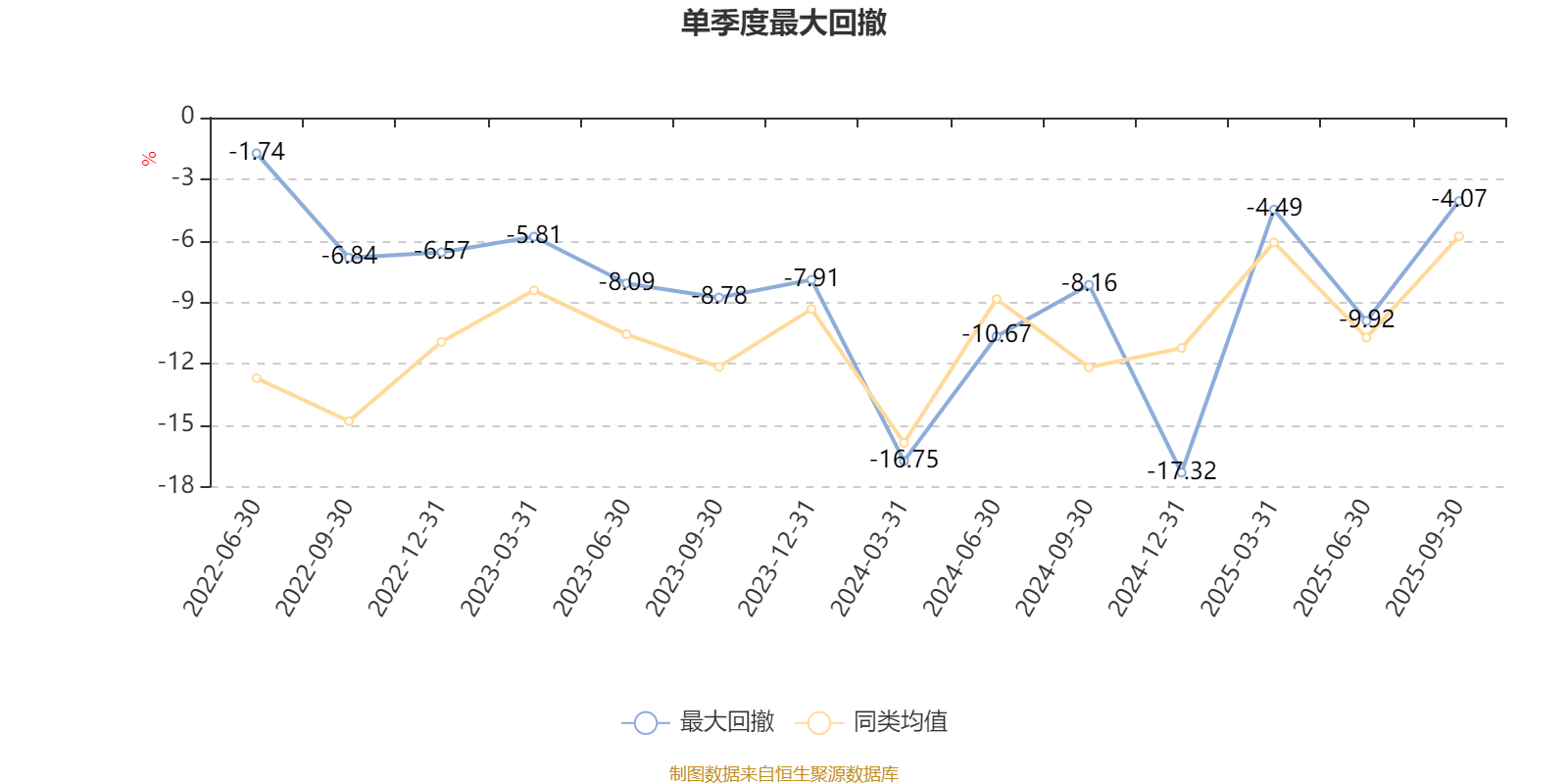截至10月24日,基金近三年最大回撤为30.63%,同类可比基金排名93/365。单季度最大回撤出现在2024年四季度,为17.32%。