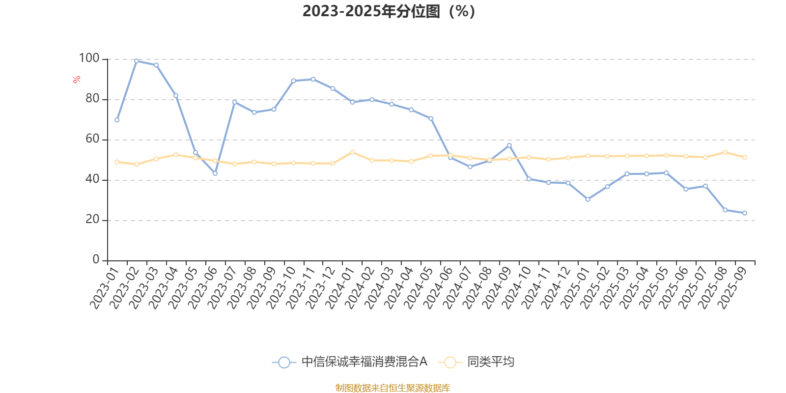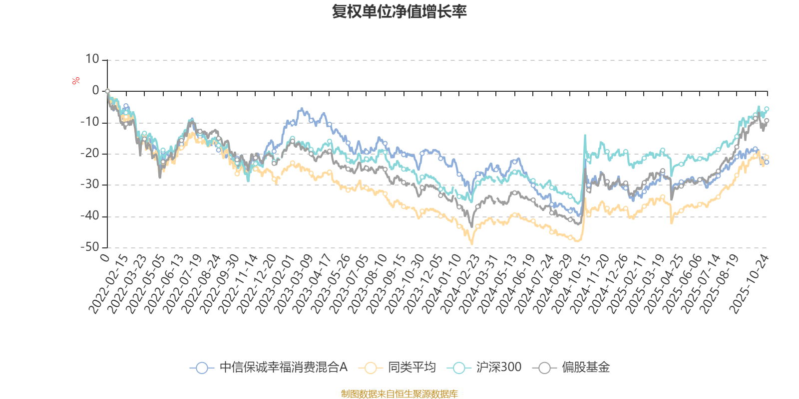截至10月24日,中信保诚幸福消费混合A近三个月复权单位净值增长率为2.51%,位于同类可比基金603/689;近半年复权单位净值增长率为8.99%,位于同类可比基金633/688;近一年复权单位净值增长率为8.35%,位于同类可比基金594/653;近三年复权单位净值增长率为3.61%,位于同类可比基金231/363。