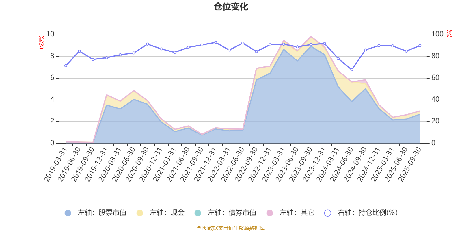 据定期报告数据统计,近三年平均股票仓位为86.62%,同类平均为83.5%。2021年末基金达到92.84%的最高仓位,2024年上半年末最低,为67.74%。