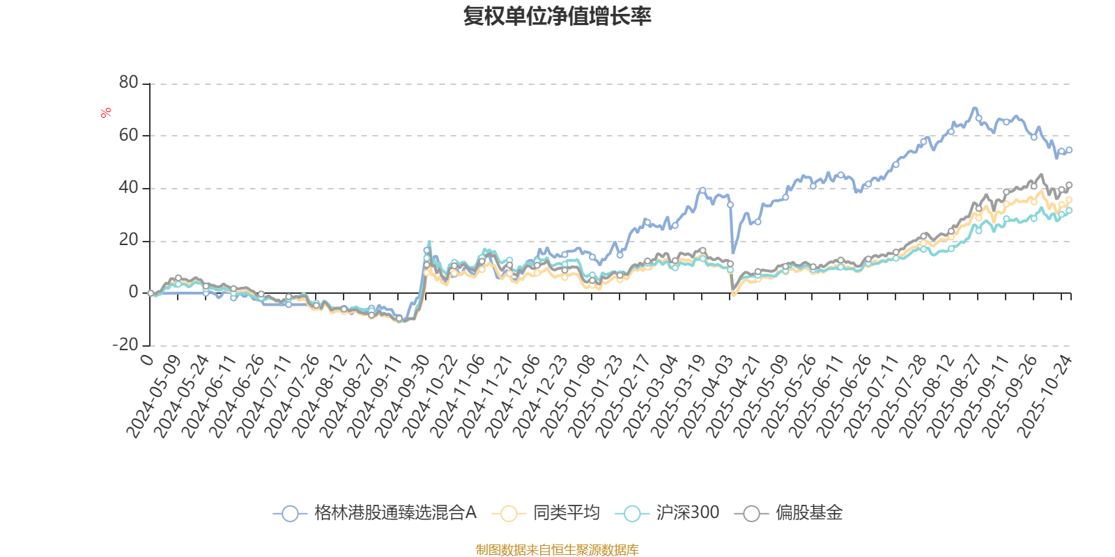 截至10月24日,格林港股通臻选混合A近三个月复权单位净值增长率为-1.33%,位于同类可比基金667/689;近半年复权单位净值增长率为15.99%,位于同类可比基金534/688;近一年复权单位净值增长率为44.34%,位于同类可比基金113/653。