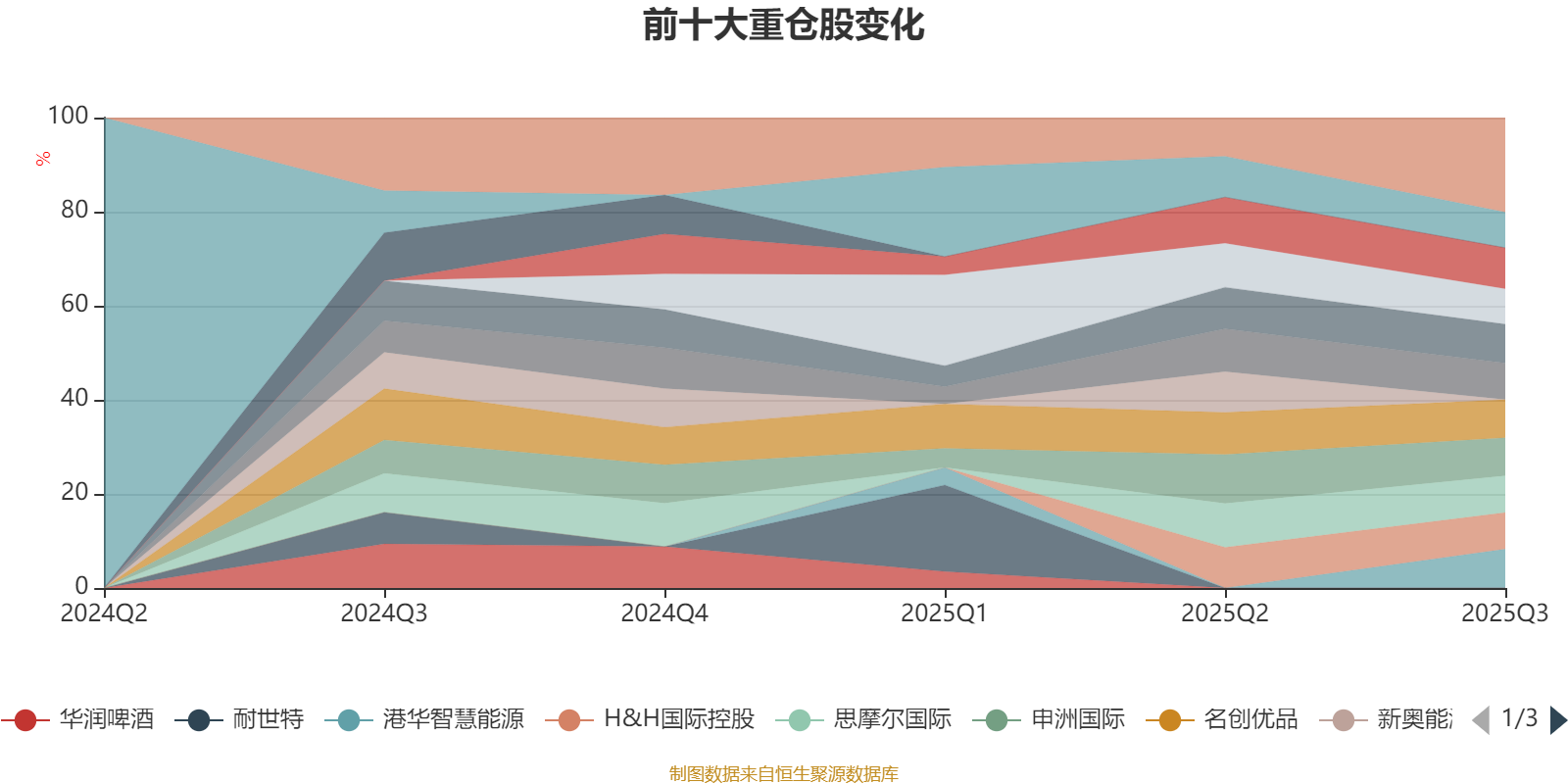 该基金持股集中度较高。截至2025年三季度末,基金十大重仓股分别是巨子生物、港华智慧能源、中国东方教育、名创优品、申洲国际、思摩尔国际、中国燃气、H&H国际控股、舜宇光学科技、泉峰控股。