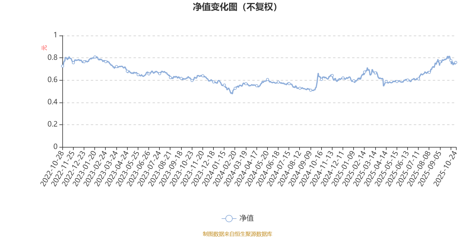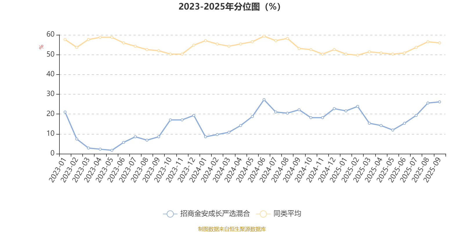 通过所选区间该基金净值增长率分位图,可以观察该基金与同类基金业绩比较情况。图为坐标原点到区间内某时点的净值增长率在同类基金中的分位数。