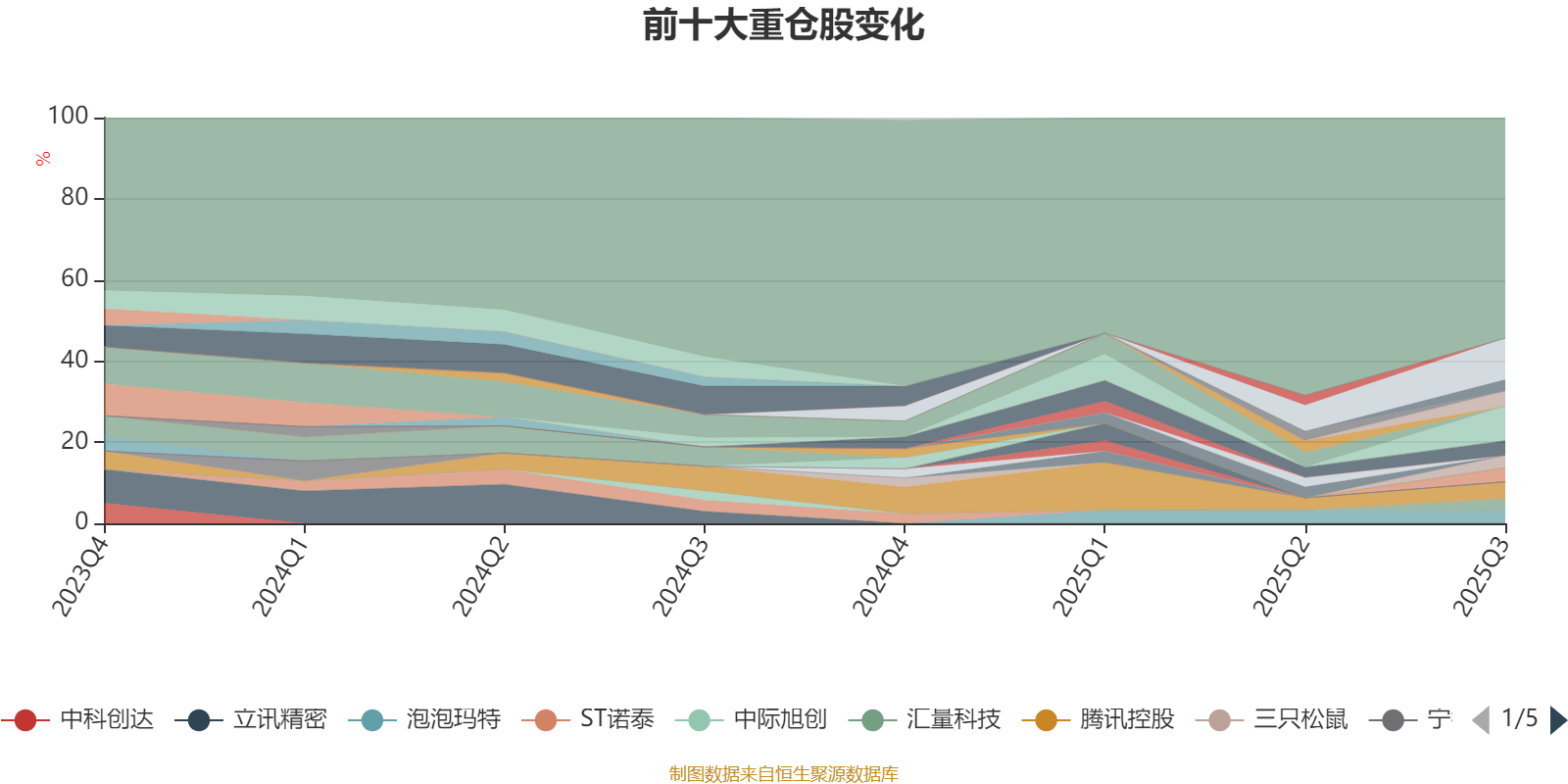 截至2025年三季度末,基金十大重仓股分别是新易盛、阿里巴巴-W、腾讯控股、杰华特、中芯国际、三生制药、泡泡玛特、信达生物、九方智投控股、汇量科技。