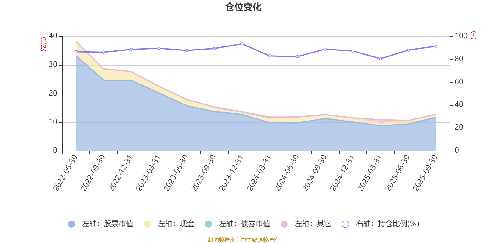 据定期报告数据统计,近三年平均股票仓位为87.57%,同类平均为87.54%。2023年末基金达到93.54%的最高仓位,2025年一季度末最低,为80.53%。