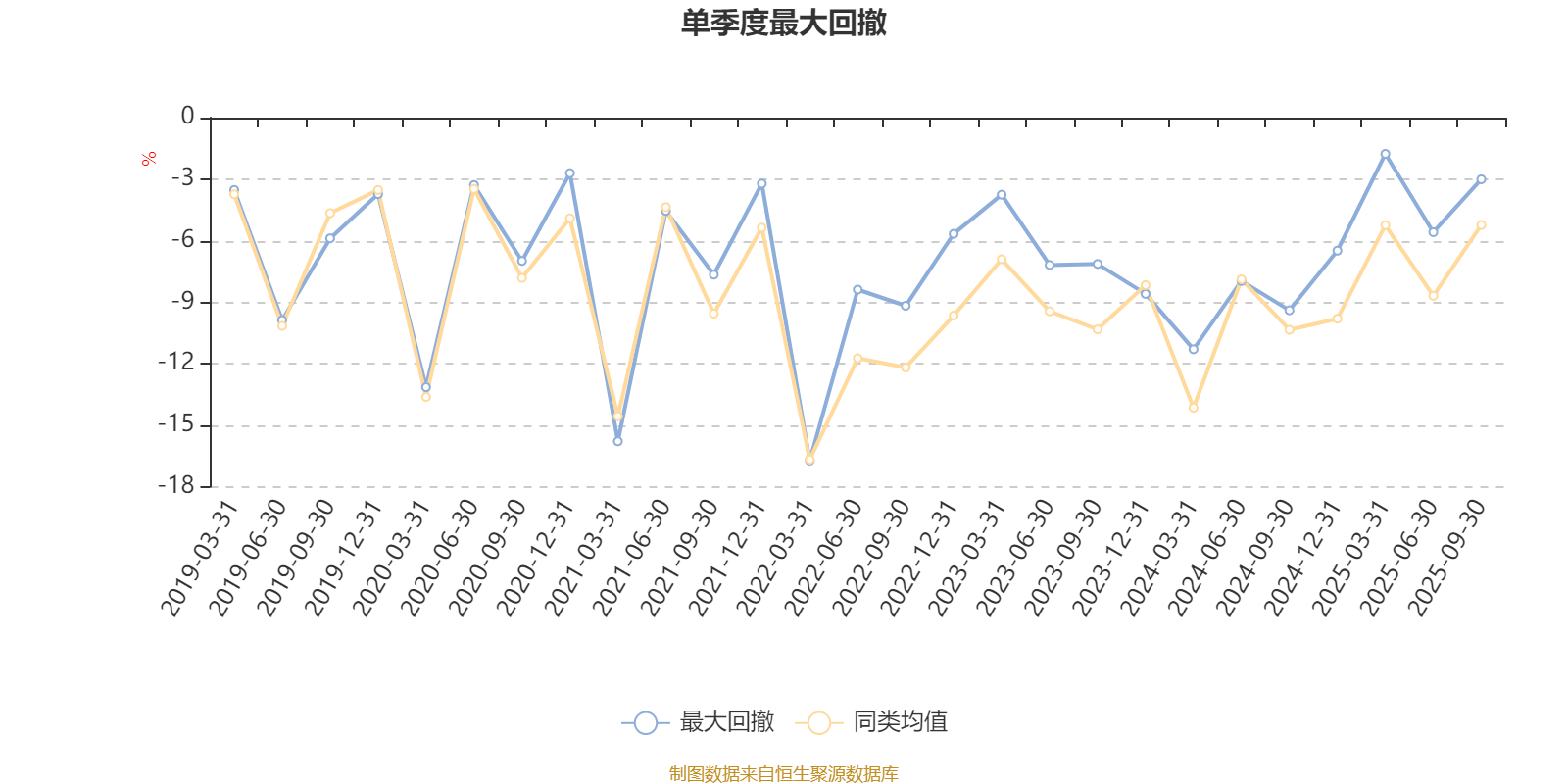 截至10月27日,基金近三年最大回撤为25.83%,同类可比基金排名402/1274。单季度最大回撤出现在2022年一季度,为16.73%。