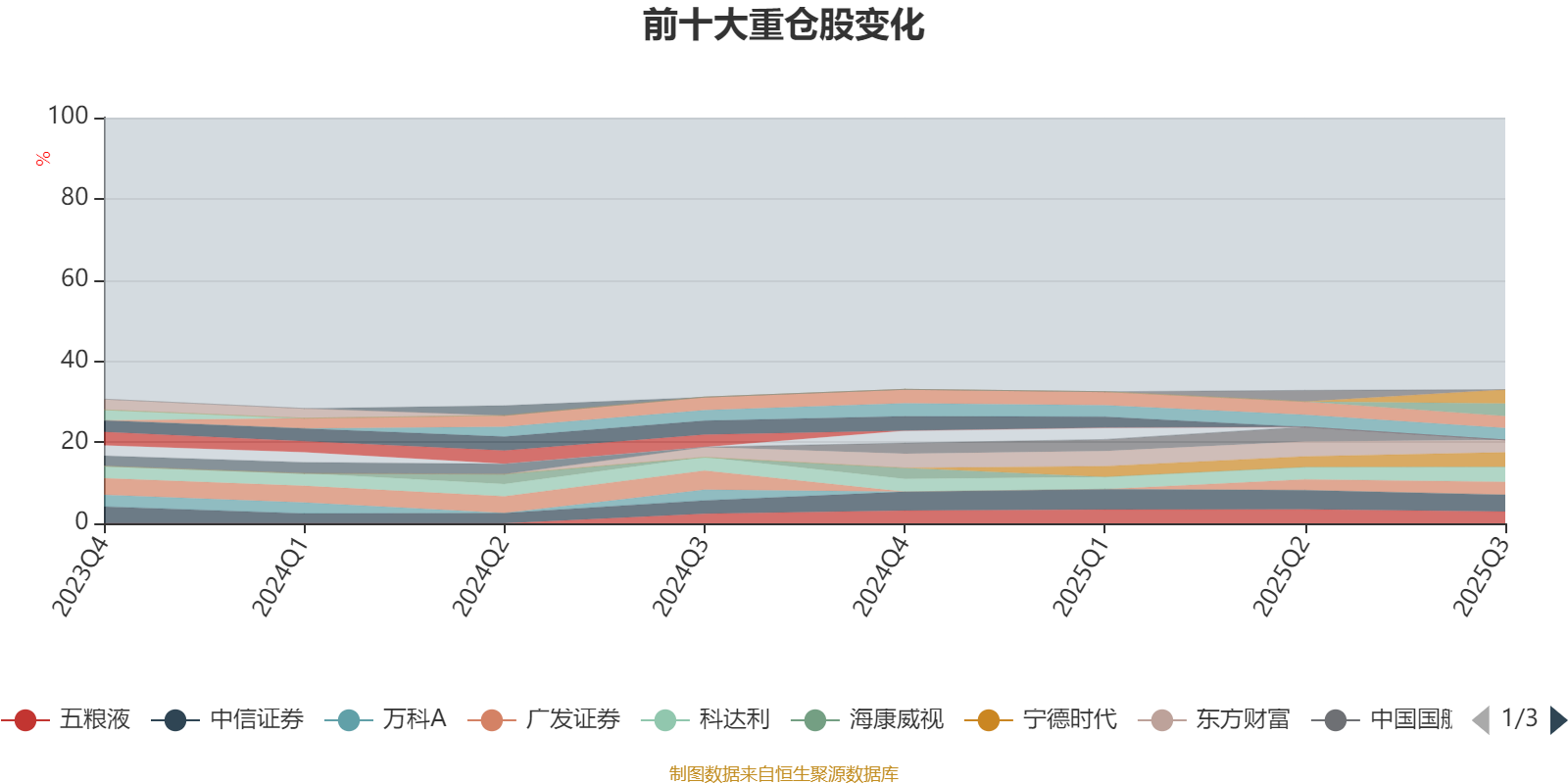 截至2025年三季度末,基金十大重仓股分别是中信证券、科达利、宁德时代、三花智控、广发证券、拓普集团、东方财富、中国人寿、保利发展、五粮液。