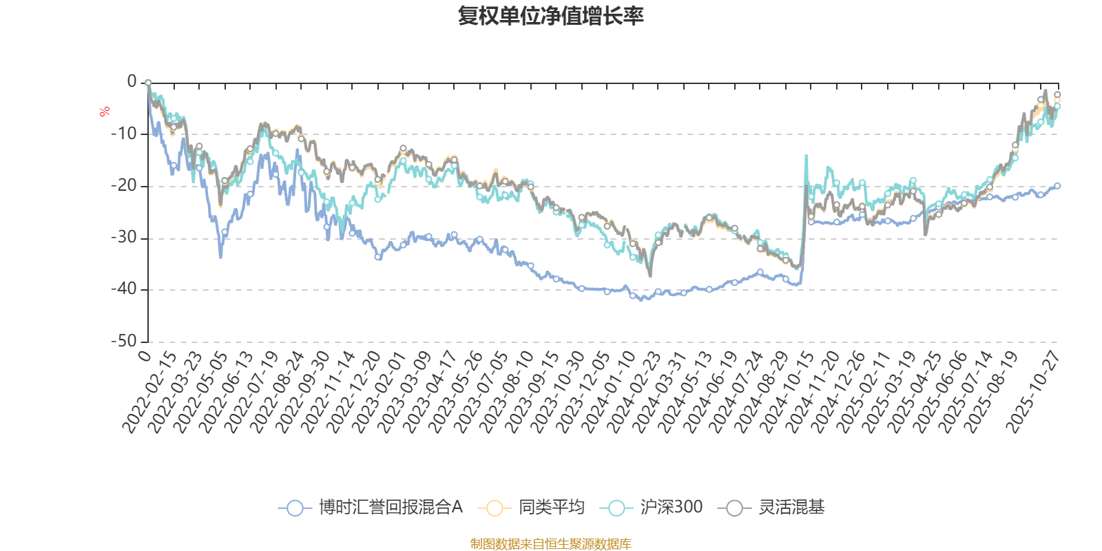 截至10月27日,博时汇誉回报混合A近三个月复权单位净值增长率为2.99%,位于同类可比基金1041/1287;近半年复权单位净值增长率为5.36%,位于同类可比基金1138/1287;近一年复权单位净值增长率为9.55%,位于同类可比基金978/1287;近三年复权单位净值增长率为11.77%,位于同类可比基金727/1286。