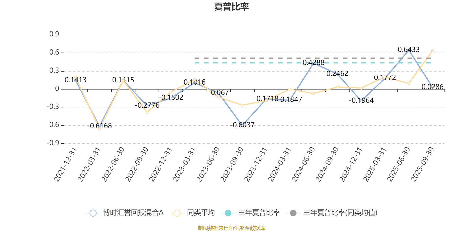 截至9月30日,基金近三年夏普比率为0.4335,位于同类可比基金778/1285。