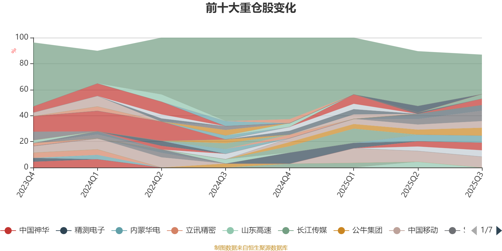 截至2025年三季度末,基金十大重仓股分别是中国移动、工商银行、福耀玻璃、腾讯控股、中国银行、中国财险、长江电力、交通银行、农业银行、中国电信。