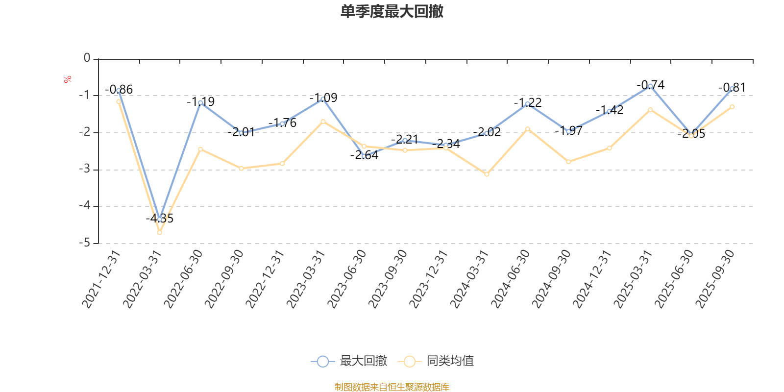 截至10月24日,基金近三年最大回撤为4.62%,同类可比基金排名163/552。单季度最大回撤出现在2022年一季度,为4.35%。