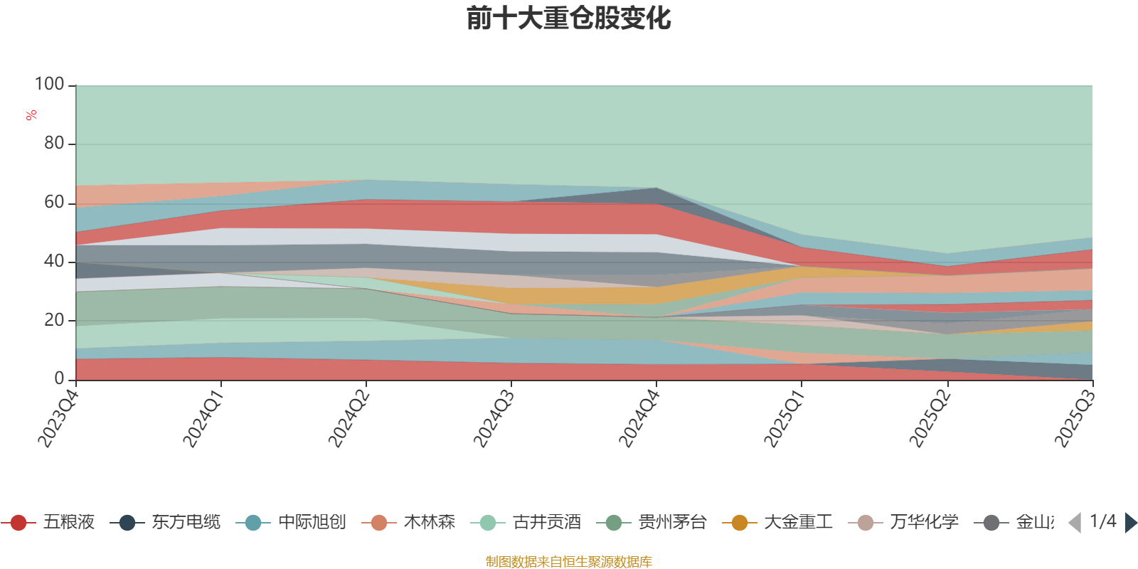 截至2025年三季度末,基金十大重仓股分别是恺英网络、贵州茅台、新易盛、东方电缆、中际旭创、金山办公、温氏股份、海尔智家、大金重工、百利天恒。
