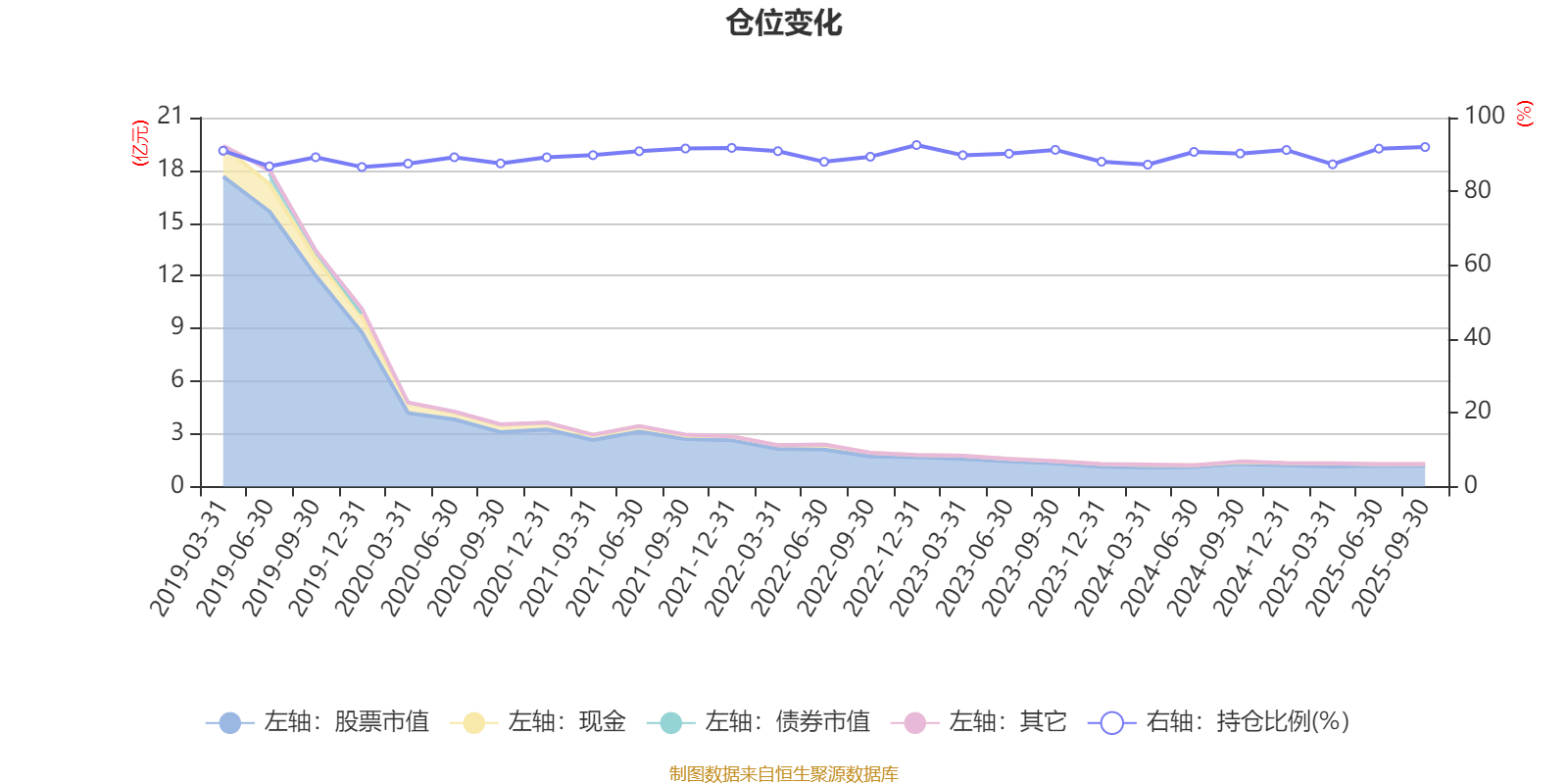 据定期报告数据统计,近三年平均股票仓位为90.19%,同类平均为87.08%。2022年末基金达到92.56%的最高仓位,2019年末最低,为86.61%。