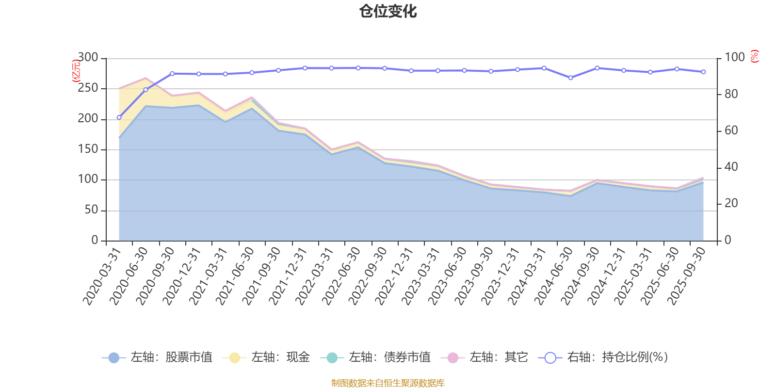据定期报告数据统计,近三年平均股票仓位为93.09%,同类平均为87.09%。2022年上半年末基金达到94.66%的最高仓位,2020年一季度末最低,为67.58%。