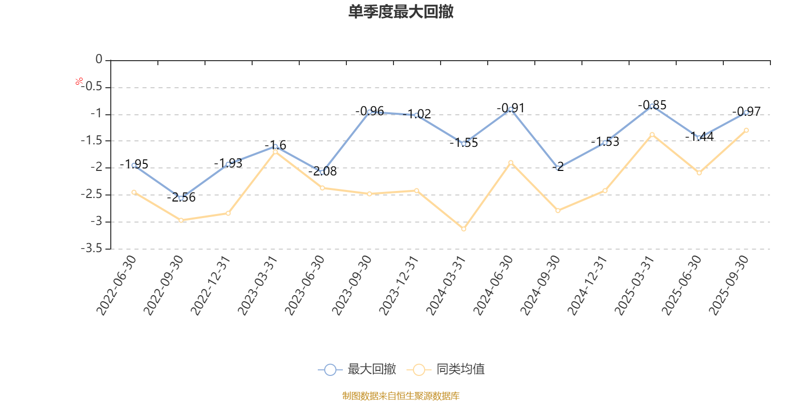 截至10月27日,基金近三年最大回撤为2.73%,同类可比基金排名47/535。单季度最大回撤出现在2022年三季度,为2.56%。