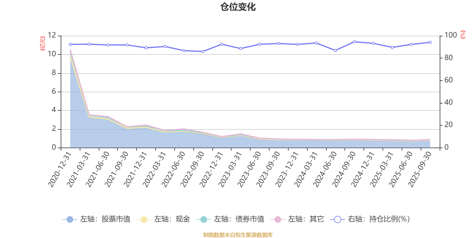 据定期报告数据统计,近三年平均股票仓位为91.88%,同类平均为83.73%。2024年三季度末基金达到94.6%的最高仓位,2022年三季度末最低,为85.91%。