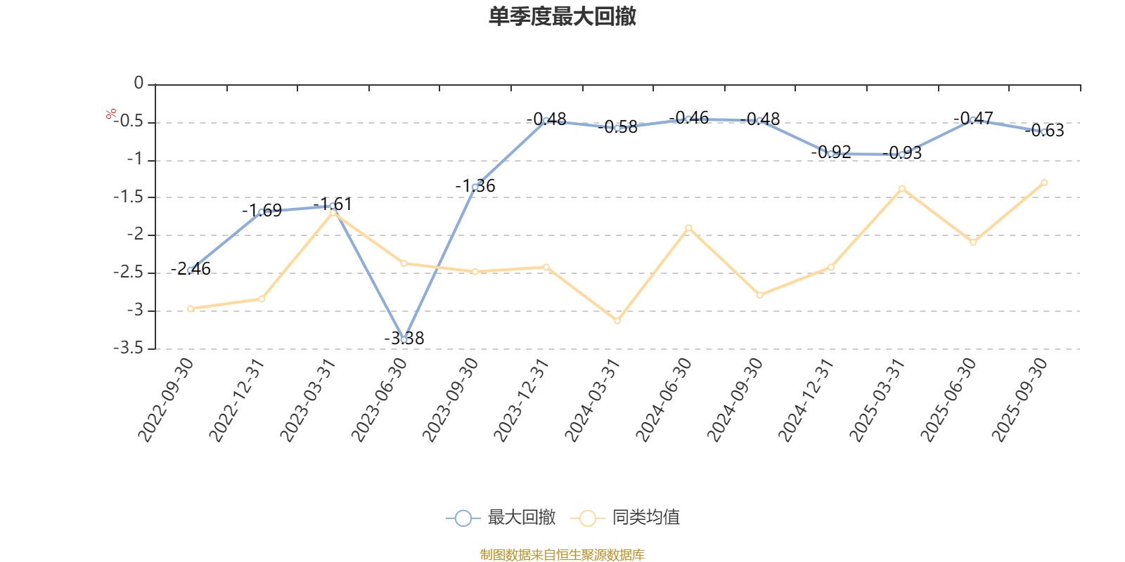 截至10月27日,基金近三年最大回撤为3.38%,同类可比基金排名83/535。单季度最大回撤出现在2023年二季度,为3.38%。