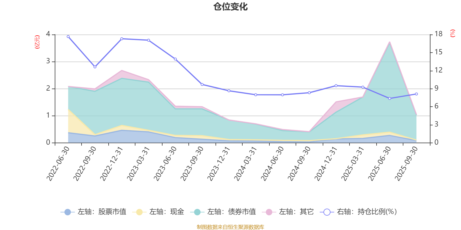基金管理人在三季报中表示,三季度外需维持韧性,“反内卷”政策推动下,中期名义增长预期改善,生产强于需求,消费和地产仍然处于筑底阶段;财政与货币协调配合度提升,央行维持流动性的宽松格局。上证指数在三季度突破多个关键点位,权益市场风格轮动明显,科技和成长相关的板块表现积极,而红利类资产表现相对偏弱;债市在通缩预期逆转、风险偏好压制和基金赎回费新规担忧下,收益率震荡上行、曲线陡峭化。运作期内,权益部分保持稳定仓位长期参与红利股票投资,债券部分杠杆和久期先降后升,获取信用债票息为主。