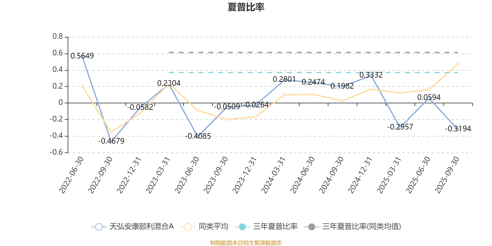 截至9月30日,基金近三年夏普比率为0.3686,位于同类可比基金421/553。