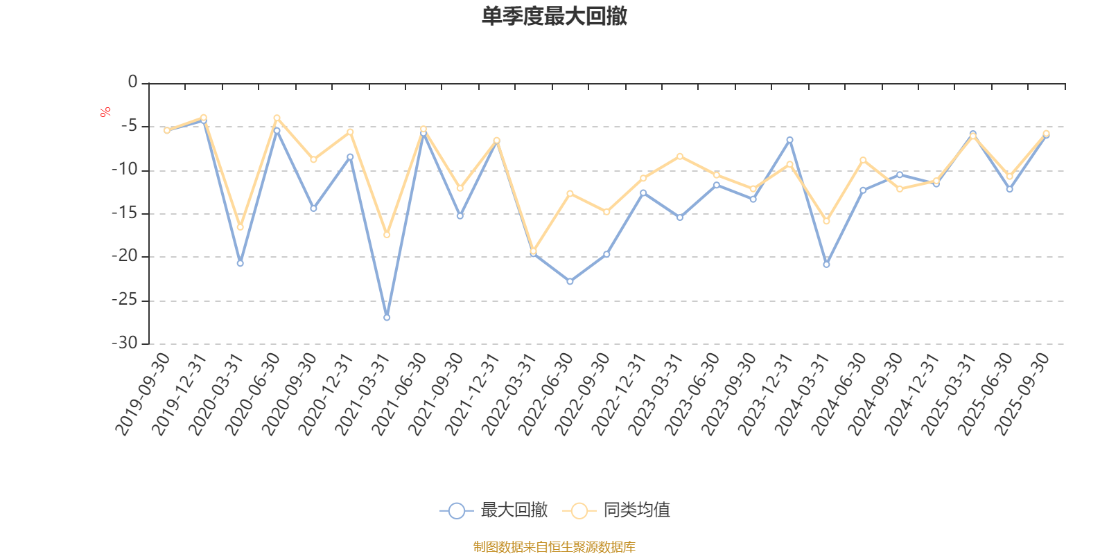 通过所选区间该基金净值增长率分位图,可以观察该基金与同类基金业绩比较情况。图为坐标原点到区间内某时点的净值增长率在同类基金中的分位数。