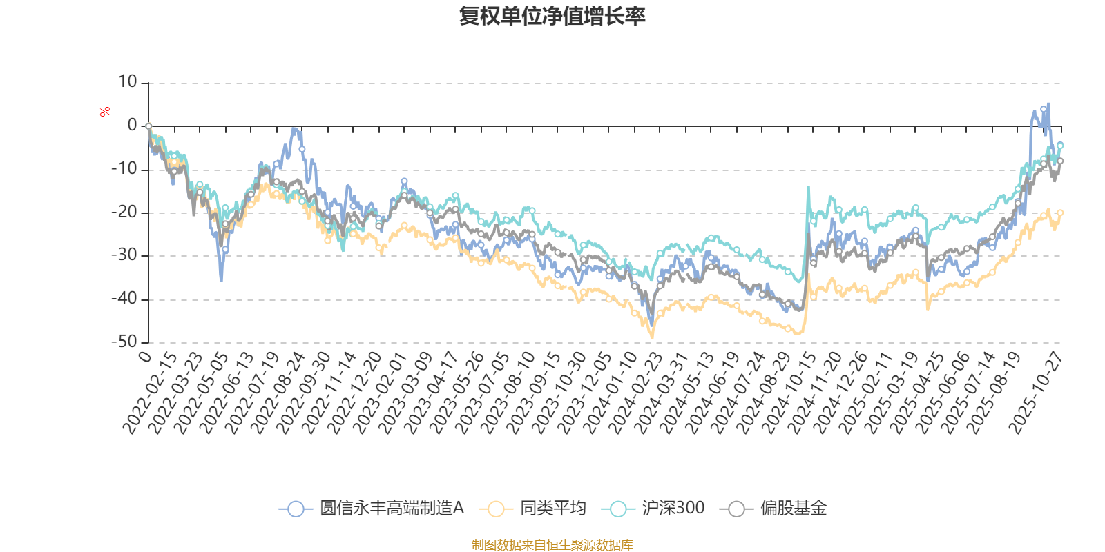 截至10月27日,圆信永丰高端制造A近三个月复权单位净值增长率为27.39%,位于同类可比基金113/689;近半年复权单位净值增长率为42.88%,位于同类可比基金130/688;近一年复权单位净值增长率为30.53%,位于同类可比基金272/653;近三年复权单位净值增长率为18.14%,位于同类可比基金159/364。