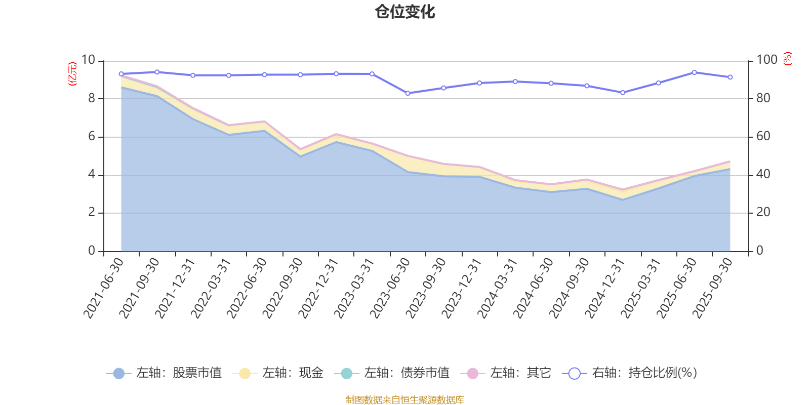 据定期报告数据统计,近三年平均股票仓位为88.69%,同类平均为86.94%。2021年三季度末基金达到94.08%的最高仓位,2023年上半年末最低,为82.93%。