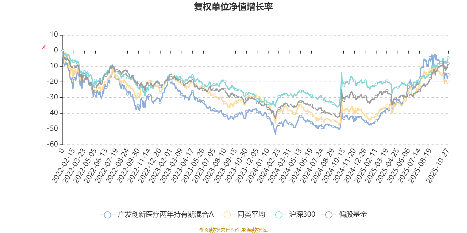 截至10月27日,广发创新医疗两年持有期混合A近三个月复权单位净值增长率为-4.74%,位于同类可比基金71/106;近半年复权单位净值增长率为25.04%,位于同类可比基金39/104;近一年复权单位净值增长率为44.64%,位于同类可比基金17/101;近三年复权单位净值增长率为28.49%,位于同类可比基金12/75。