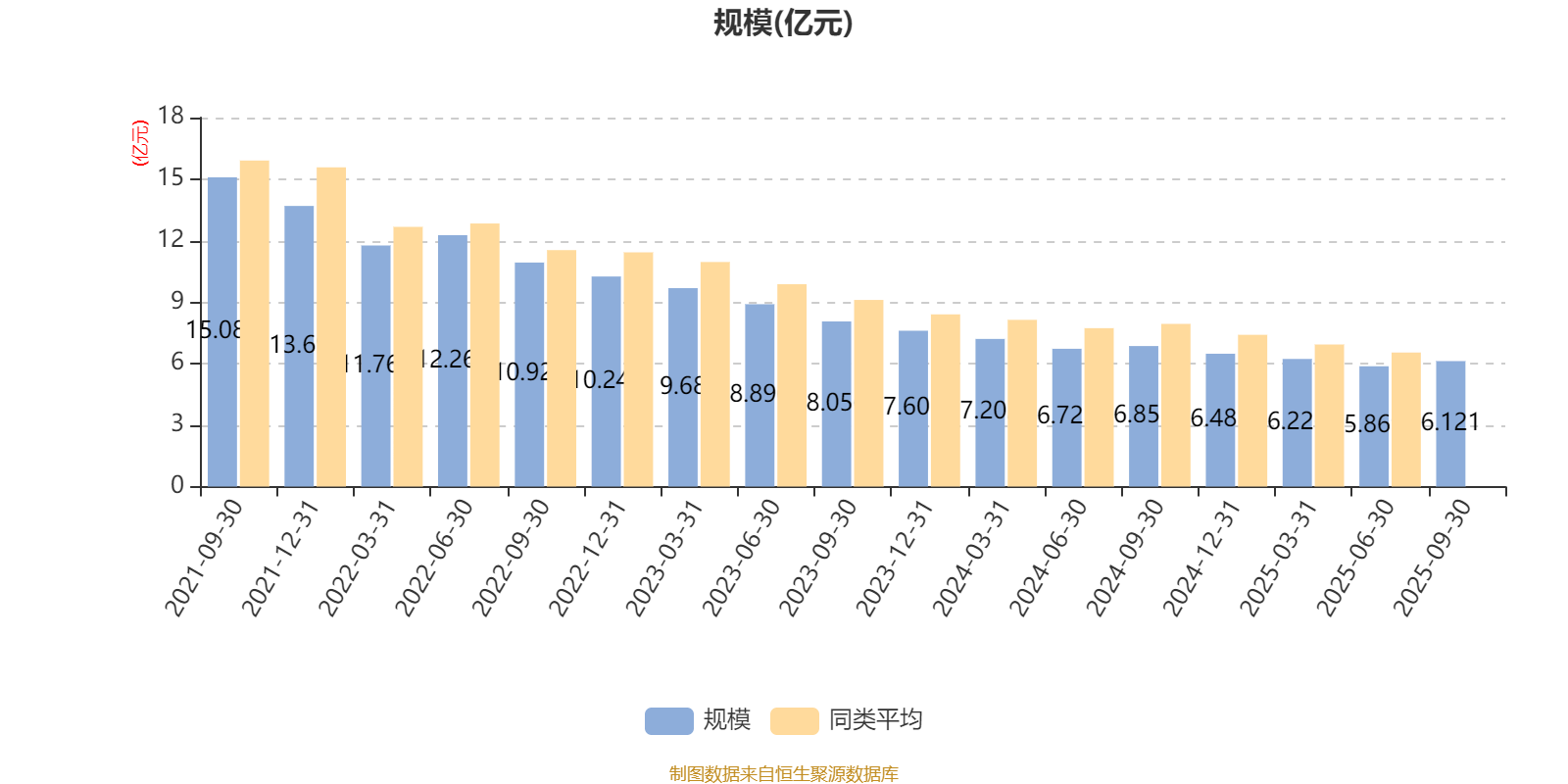 截至9月30日,基金近三年夏普比率为-0.0839,位于同类可比基金114/119。