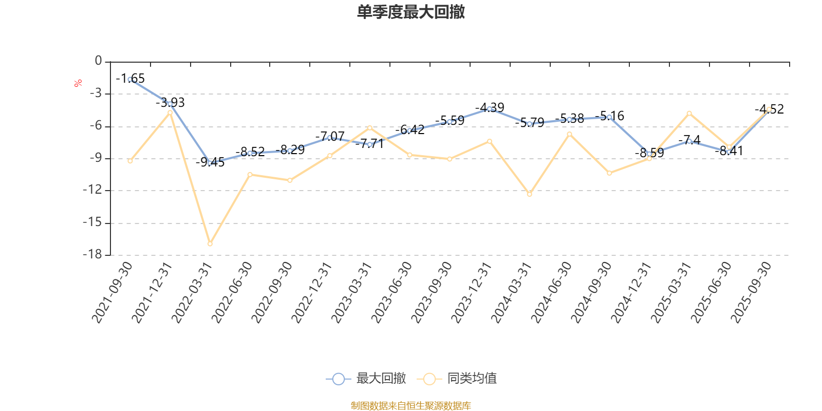 截至10月27日,基金近三年最大回撤为24.88%,同类可比基金排名52/117。单季度最大回撤出现在2022年一季度,为9.45%。