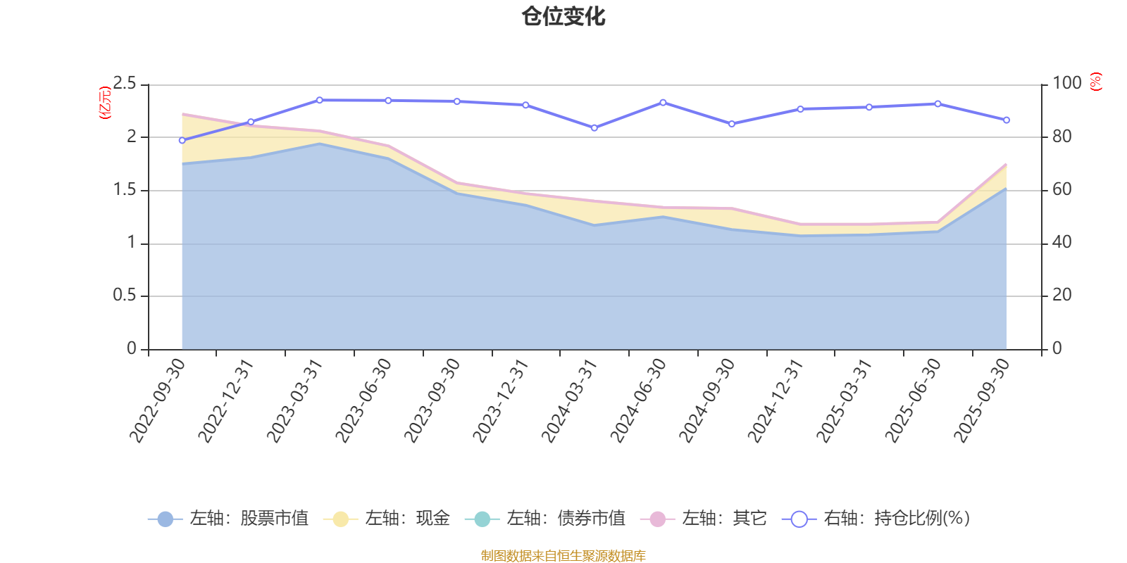 据定期报告数据统计,近三年平均股票仓位为90.25%,同类平均为83.73%。2023年一季度末基金达到94.1%的最高仓位,2022年三季度末最低,为78.9%。