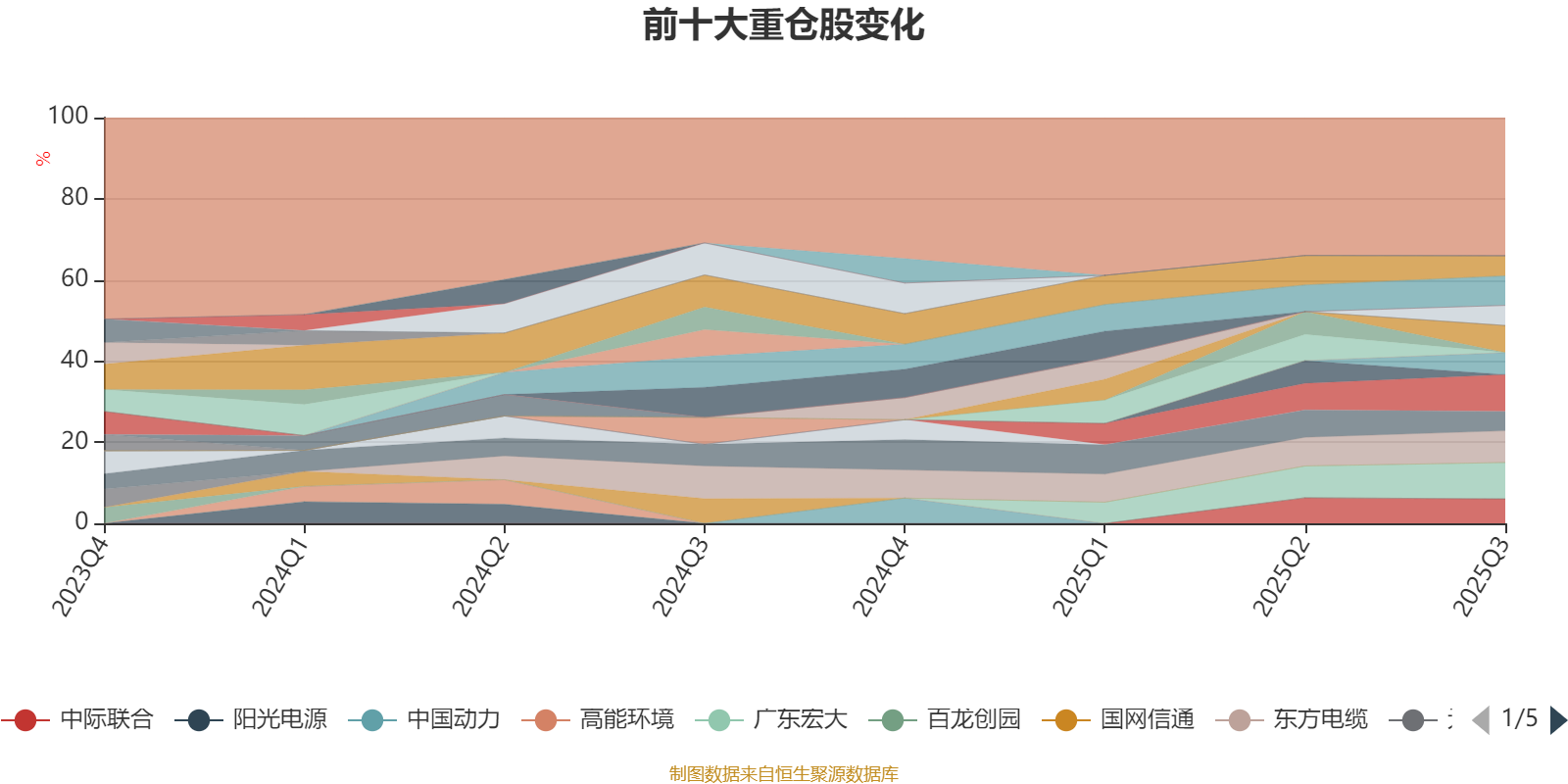 该基金持股集中度较高。截至2025年三季度末,基金十大重仓股分别是大金重工、广东宏大、东方电缆、中天科技、海力风电、中际联合、龙净环保、巨化股份、科远智慧、三美股份。