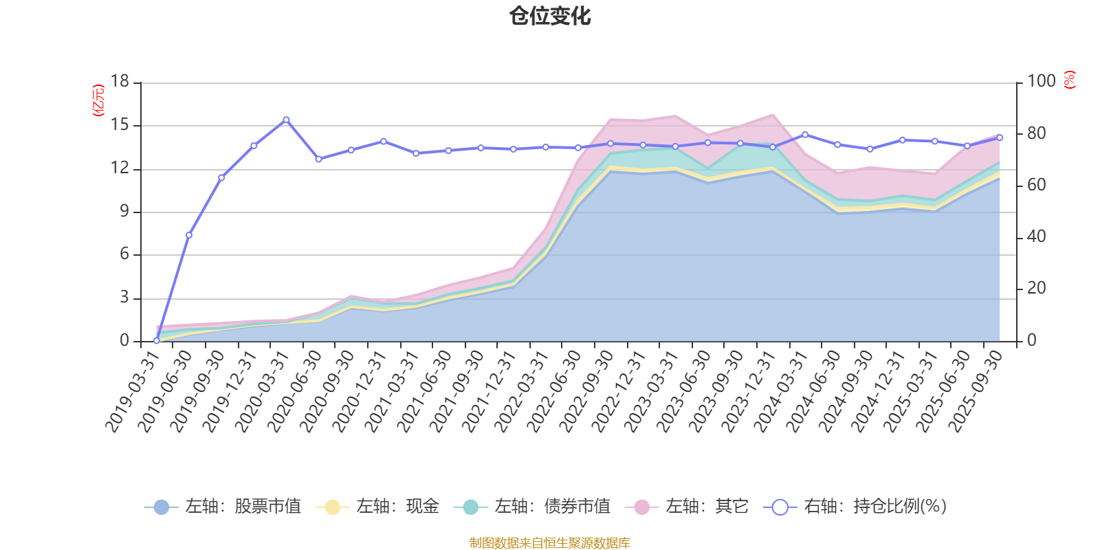 据定期报告数据统计,近三年平均股票仓位为76.58%,同类平均为72.14%。2020年一季度末基金达到85.6%的最高仓位,2019年一季度末最低,为0.27%。