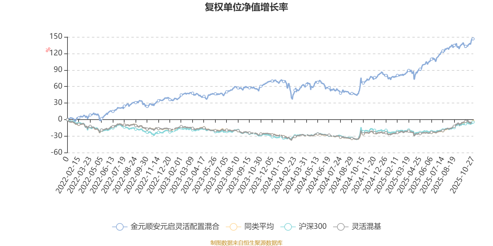 截至10月27日,金元顺安元启灵活配置混合近三个月复权单位净值增长率为7.86%,位于同类可比基金827/1287;近半年复权单位净值增长率为28.68%,位于同类可比基金515/1287;近一年复权单位净值增长率为43.74%,位于同类可比基金220/1287;近三年复权单位净值增长率为92.05%,位于同类可比基金26/1286。
