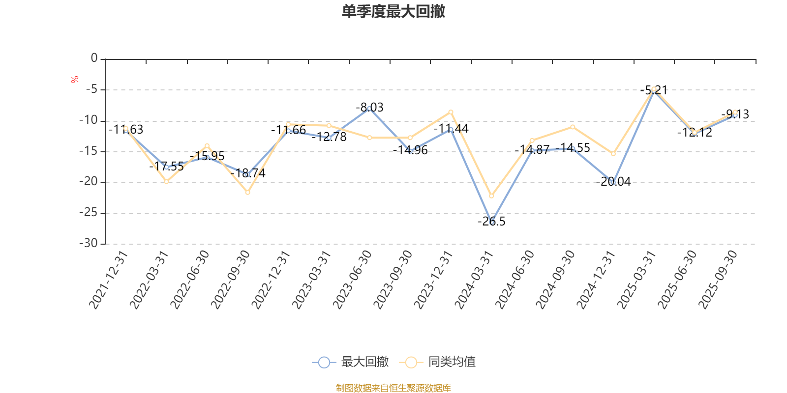 截至10月27日,基金近三年最大回撤为54.83%,同类可比基金排名74/75。单季度最大回撤出现在2024年一季度,为26.5%。