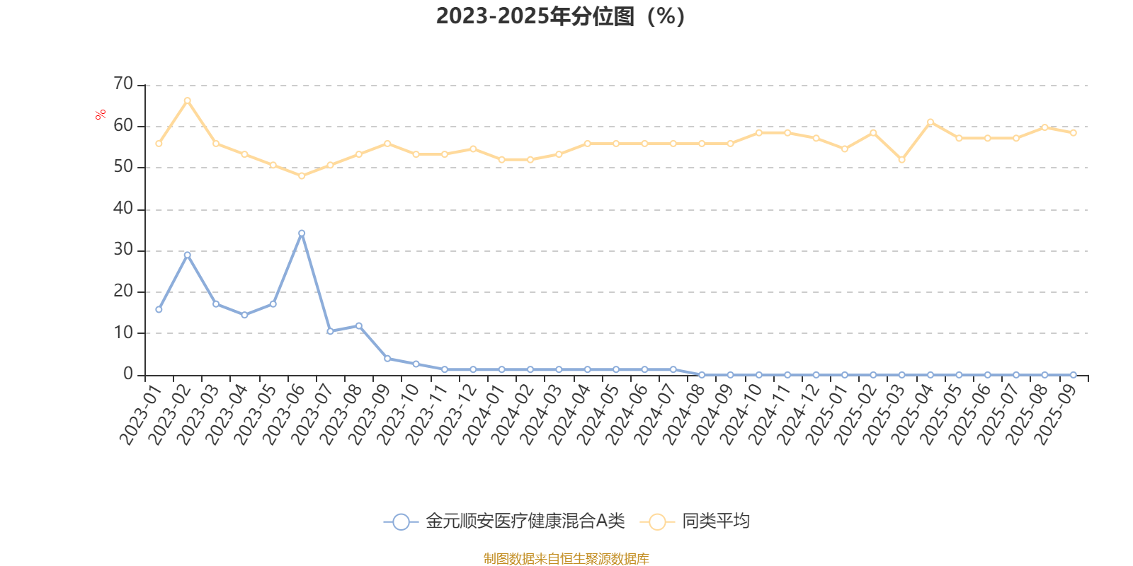 通过所选区间该基金净值增长率分位图,可以观察该基金与同类基金业绩比较情况。图为坐标原点到区间内某时点的净值增长率在同类基金中的分位数。