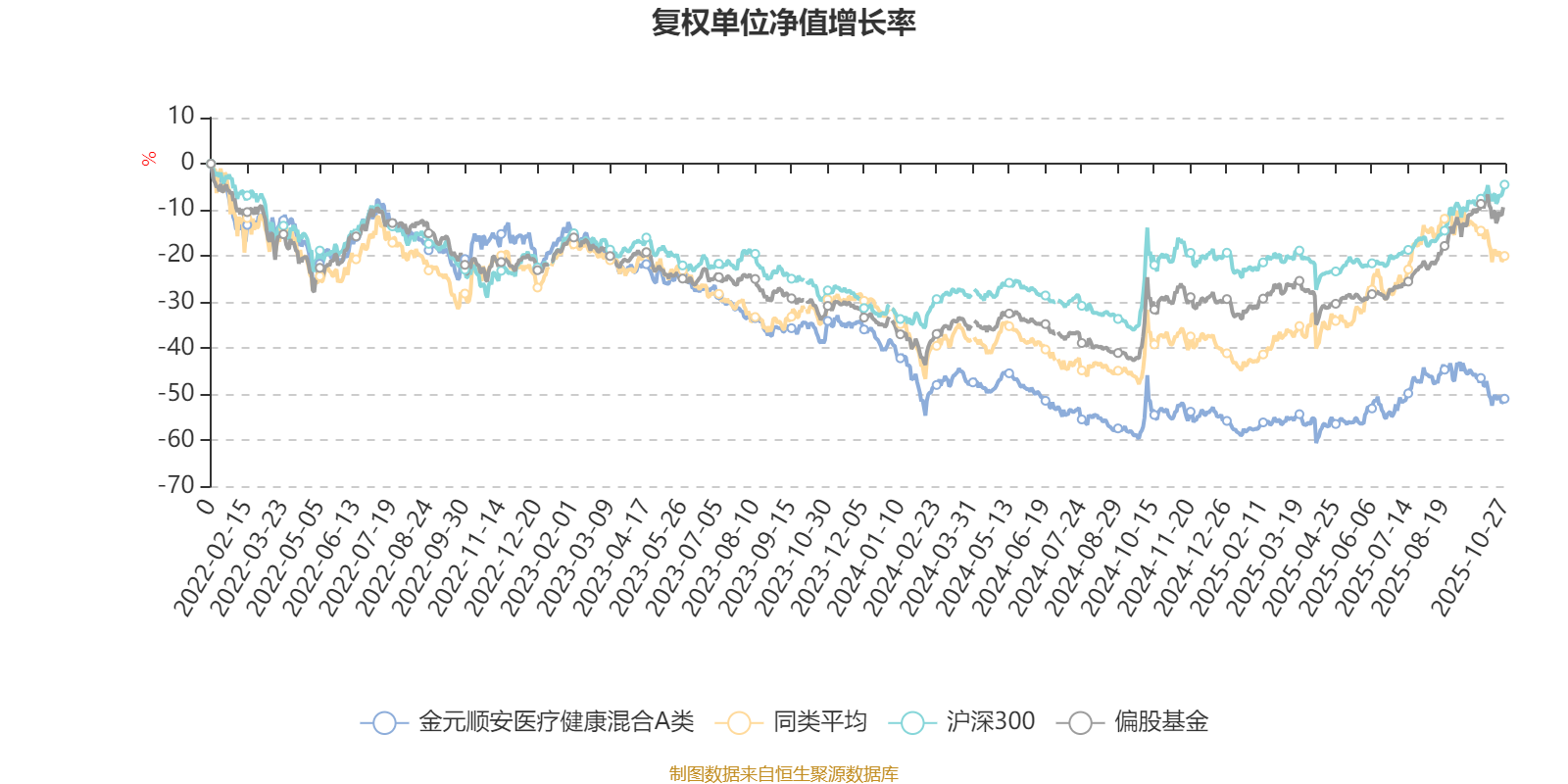 截至10月27日,金元顺安医疗健康混合A类近三个月复权单位净值增长率为-6.47%,位于同类可比基金81/106;近半年复权单位净值增长率为12.58%,位于同类可比基金93/104;近一年复权单位净值增长率为5.49%,位于同类可比基金92/101;近三年复权单位净值增长率为-41.66%,位于同类可比基金75/75。