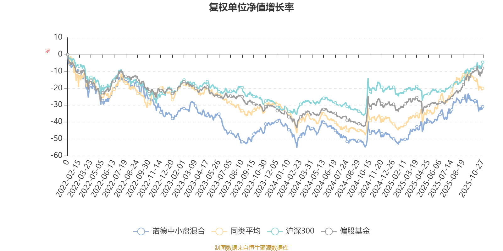 截至10月27日,诺德中小盘混合近三个月复权单位净值增长率为-3.56%,位于同类可比基金64/106;近半年复权单位净值增长率为14.72%,位于同类可比基金87/104;近一年复权单位净值增长率为26.82%,位于同类可比基金49/101;近三年复权单位净值增长率为-0.91%,位于同类可比基金48/75。