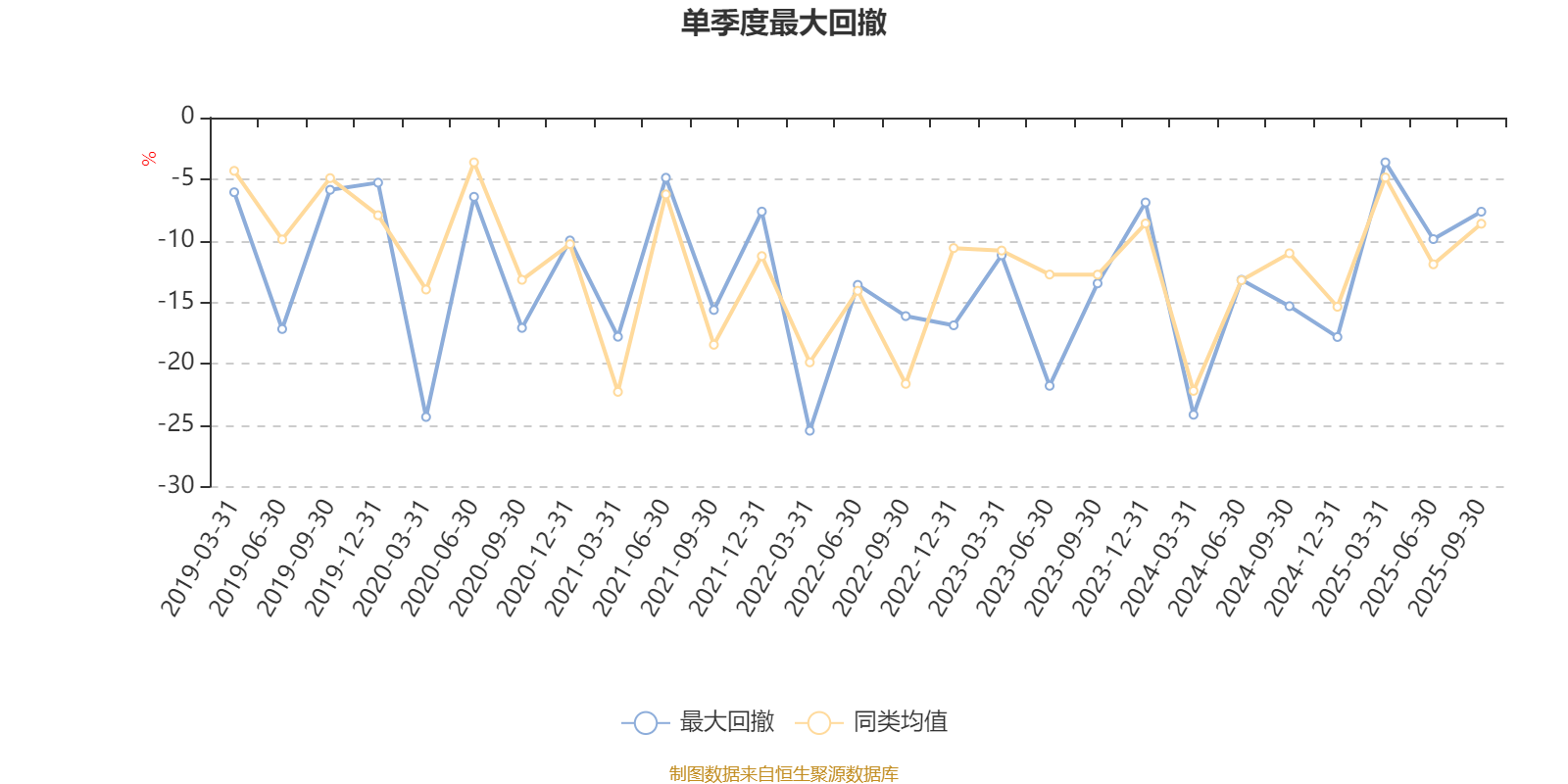 截至10月27日,基金近三年最大回撤为38.08%,同类可比基金排名34/75。单季度最大回撤出现在2022年一季度,为25.46%。