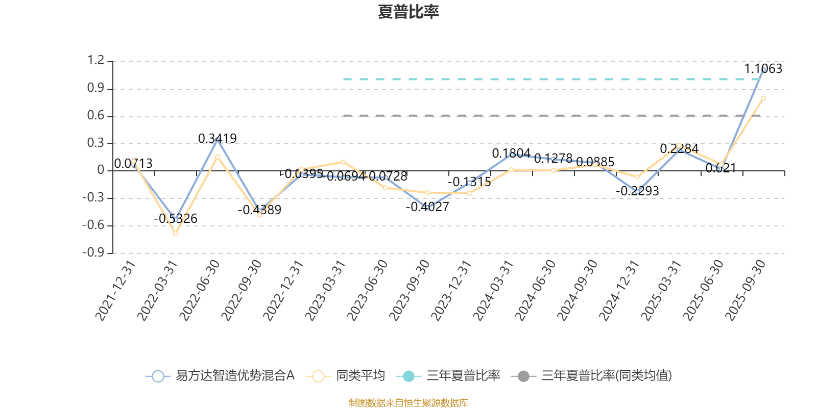 截至9月30日,基金近三年夏普比率为1.0024,位于同类可比基金19/125。