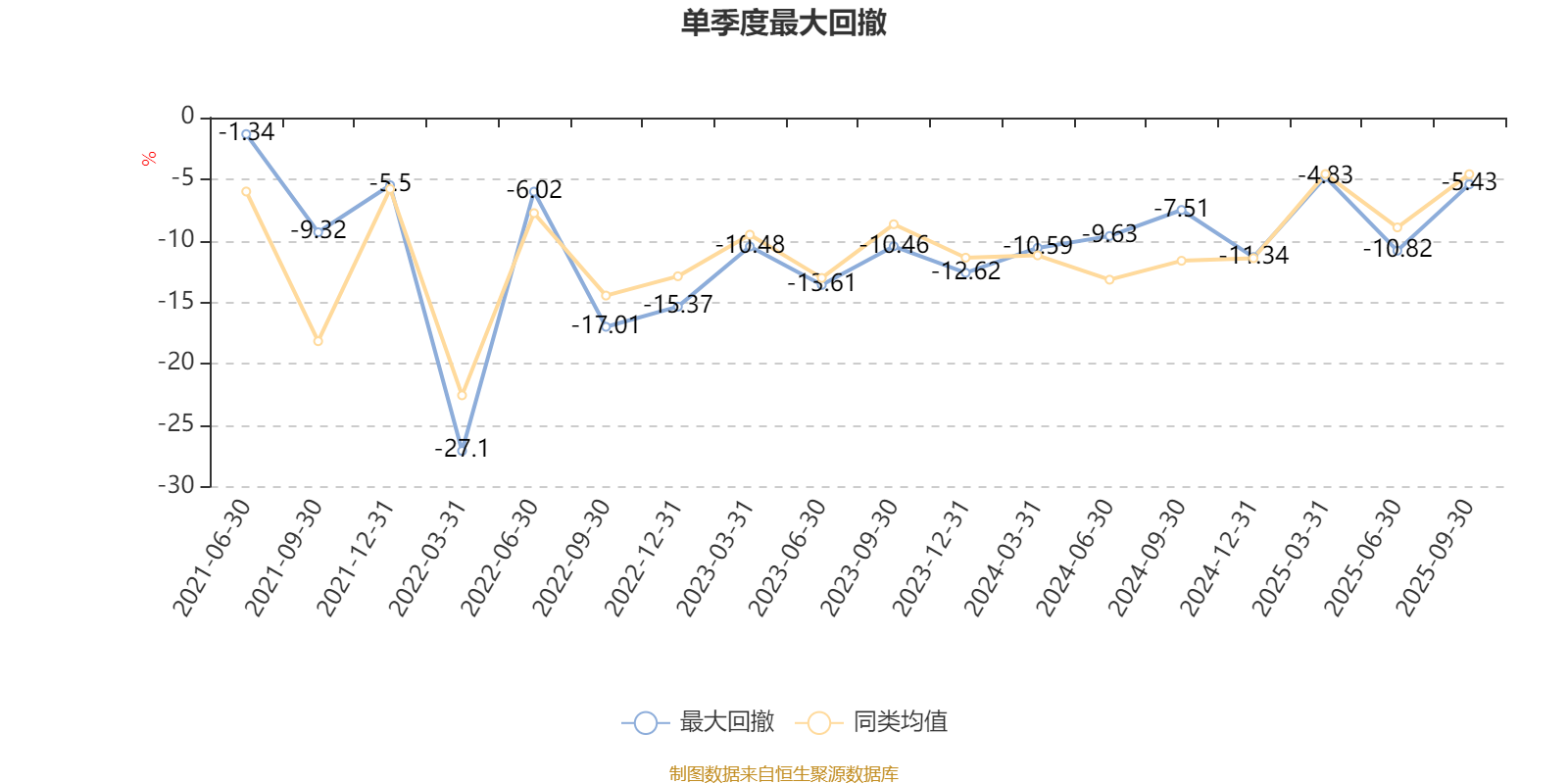 截至10月27日,基金近三年最大回撤为32.01%,同类可比基金排名17/74。单季度最大回撤出现在2022年一季度,为27.1%。