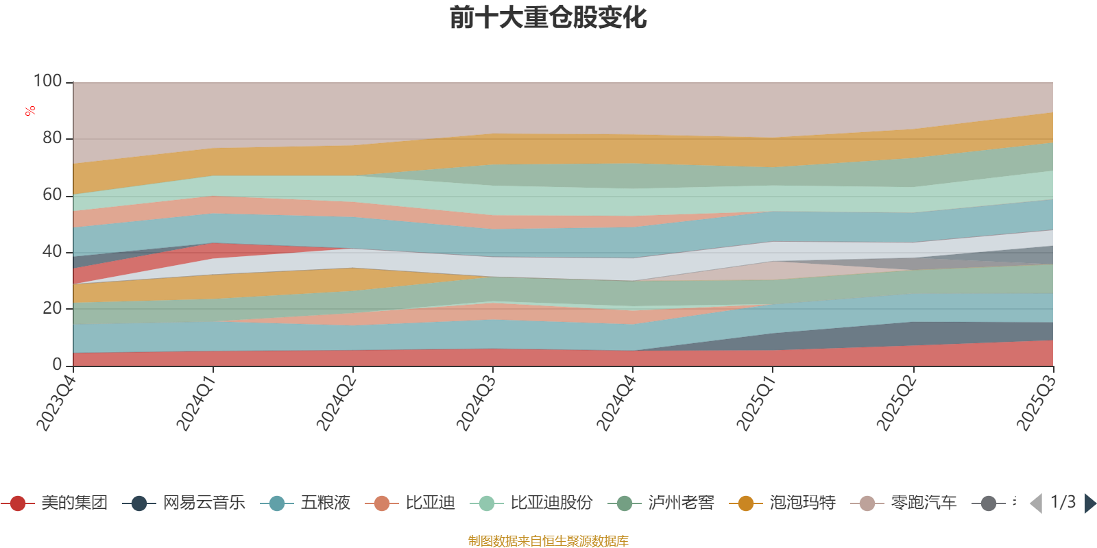 该基金持股集中度较高,近2年前十大重仓股集中度长期超过60%。截至2025年三季度末,基金十大重仓股分别是腾讯控股、贵州茅台、五粮液、泸州老窖、美团-W、理想汽车-W、美的集团、山西汾酒、网易云音乐、石头科技。