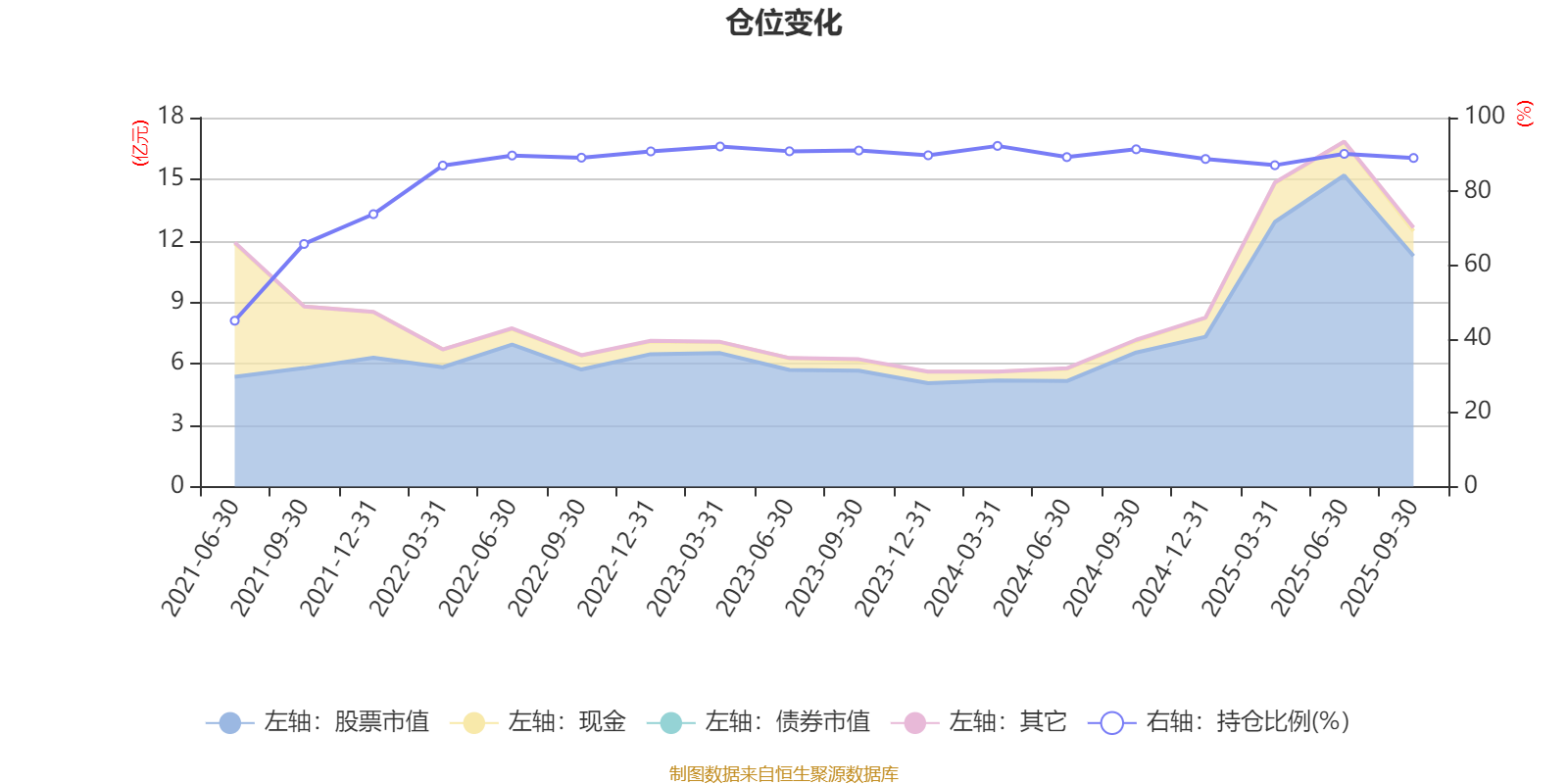 据定期报告数据统计,近三年平均股票仓位为90.24%,同类平均为87.29%。2024年一季度末基金达到92.33%的最高仓位,2021年上半年末最低,为44.95%。