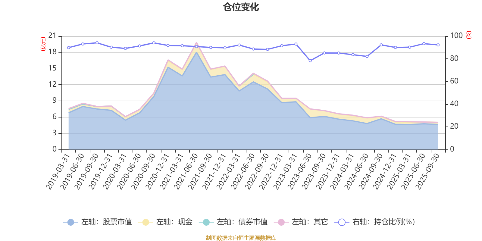 据定期报告数据统计,近三年平均股票仓位为88.11%,同类平均为72.35%。2019年三季度末基金达到94.14%的最高仓位,2023年上半年末最低,为78.35%。