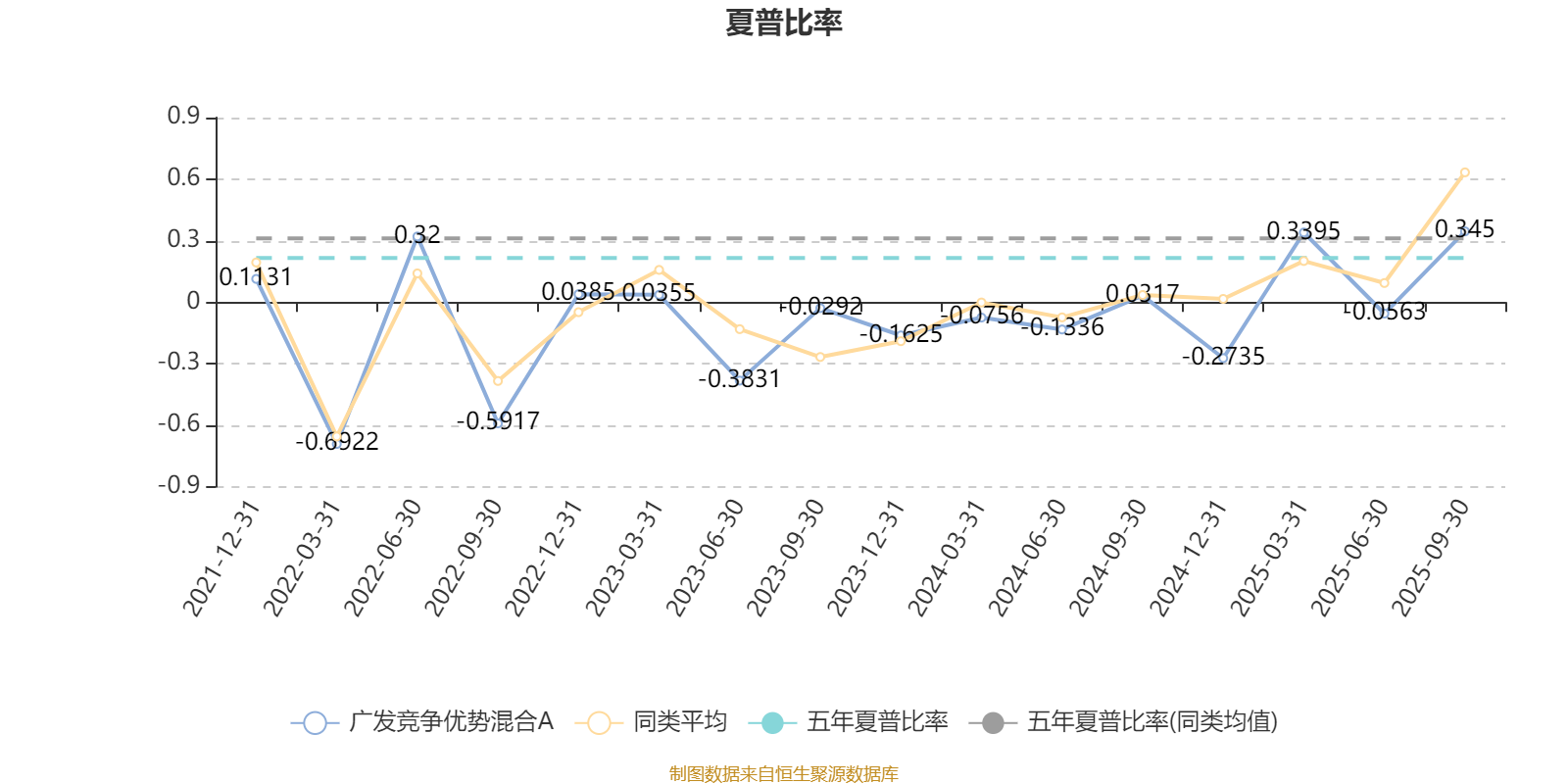 截至9月30日,基金近三年夏普比率为0.1919,位于同类可比基金1041/1285。