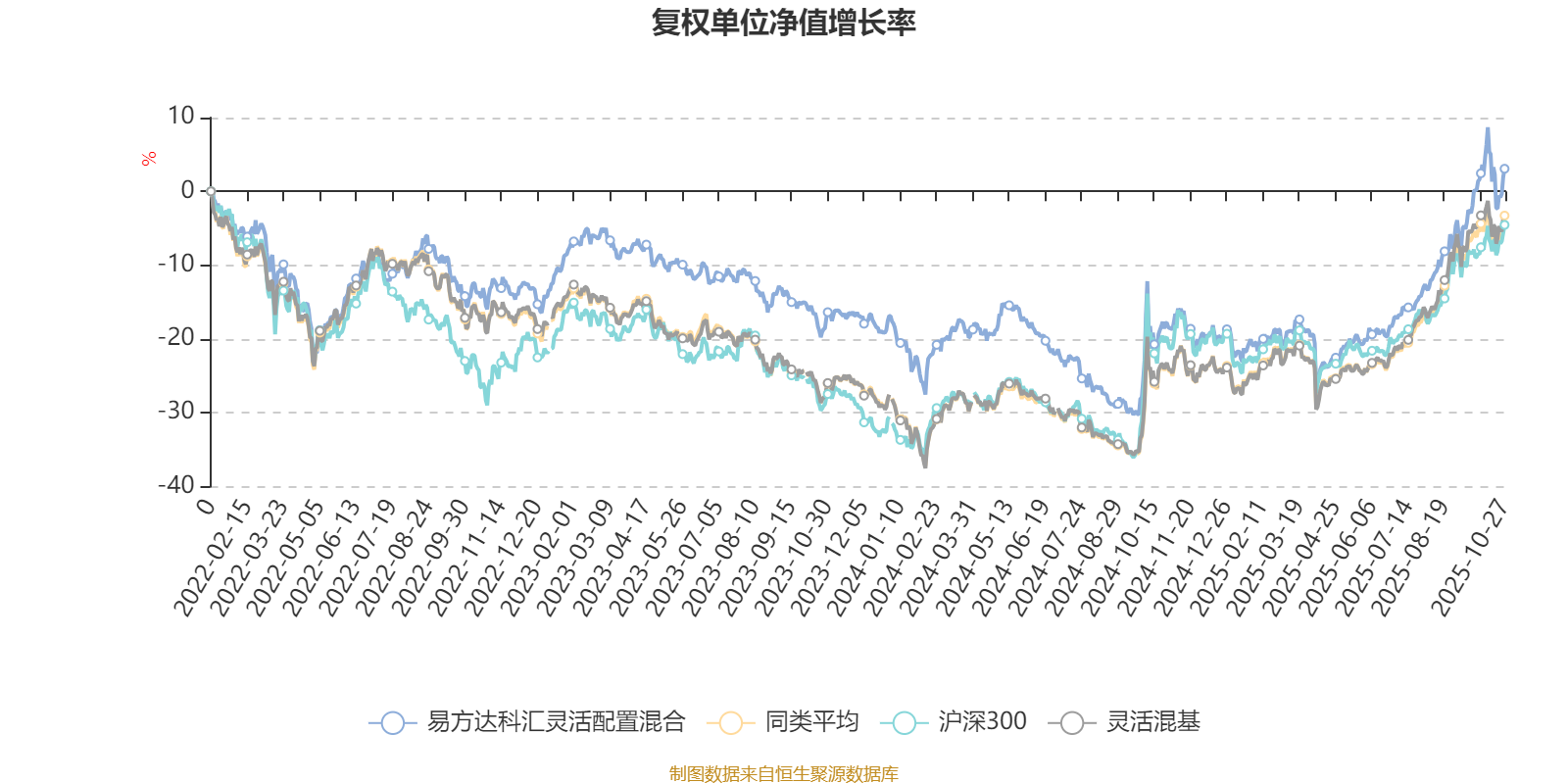截至10月27日,易方达科汇灵活配置混合近三个月复权单位净值增长率为20.18%,位于同类可比基金392/1287;近半年复权单位净值增长率为33.04%,位于同类可比基金419/1287;近一年复权单位净值增长率为25.48%,位于同类可比基金554/1287;近三年复权单位净值增长率为19.82%,位于同类可比基金528/1286。