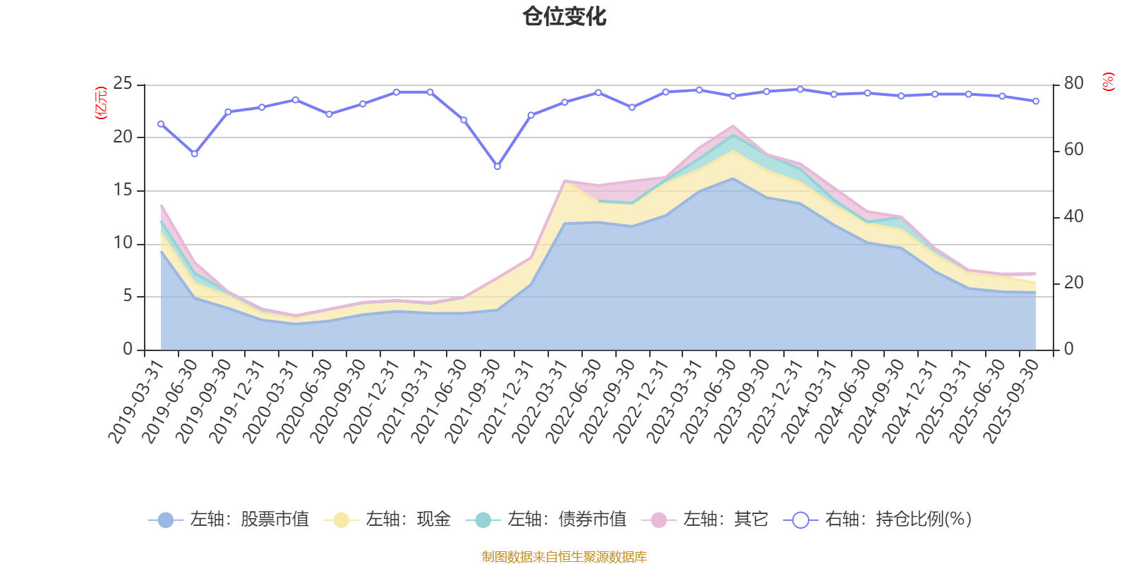 据定期报告数据统计,近三年平均股票仓位为77.18%,同类平均为72.14%。2023年末基金达到78.6%的最高仓位,2021年三季度末最低,为55.32%。