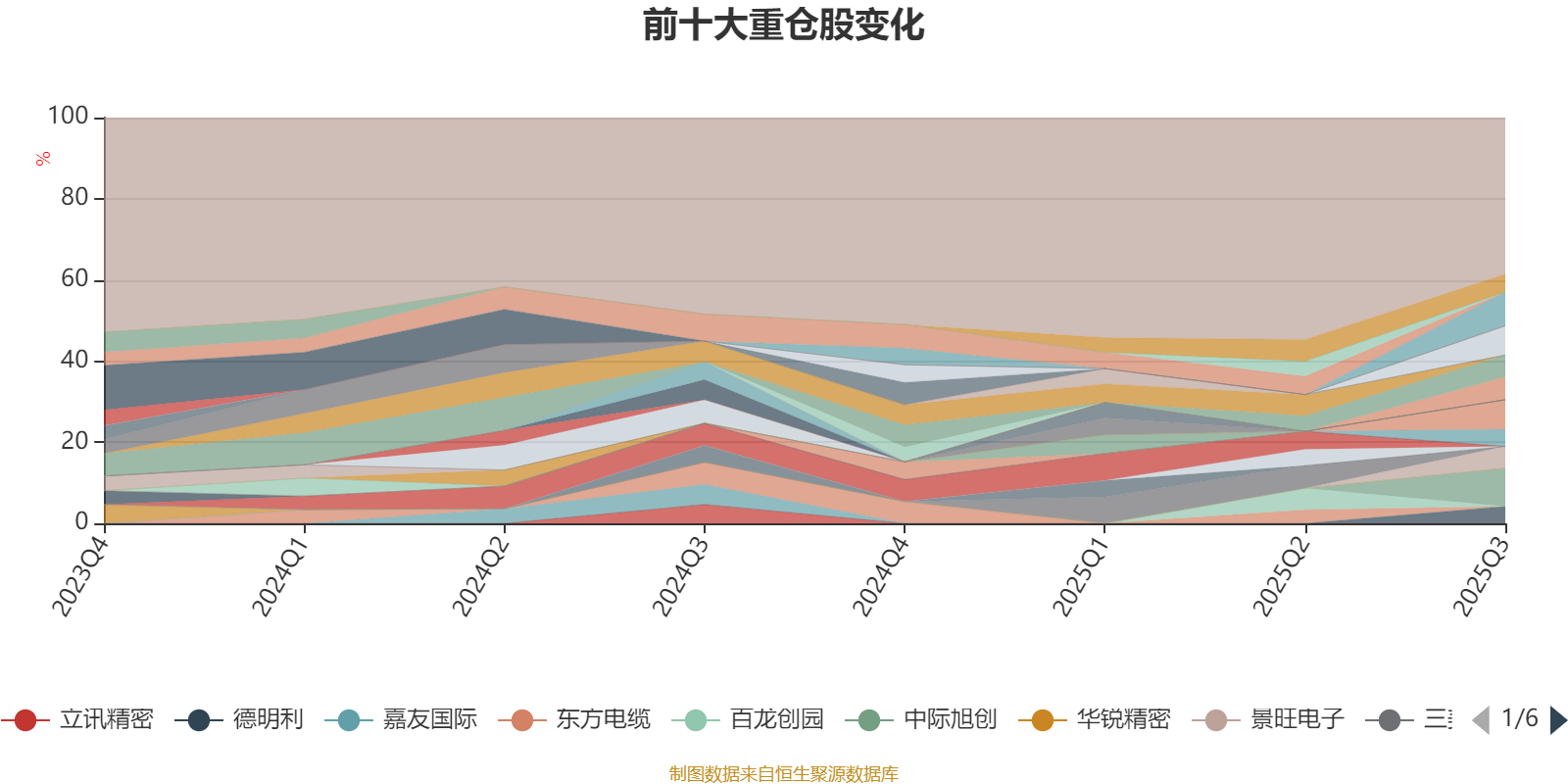 截至2025年三季度末,基金十大重仓股分别是中际旭创、新易盛、深南电路、工业富联、宁波华翔、沪电股份、景旺电子、明阳智能、新凤鸣、德明利。