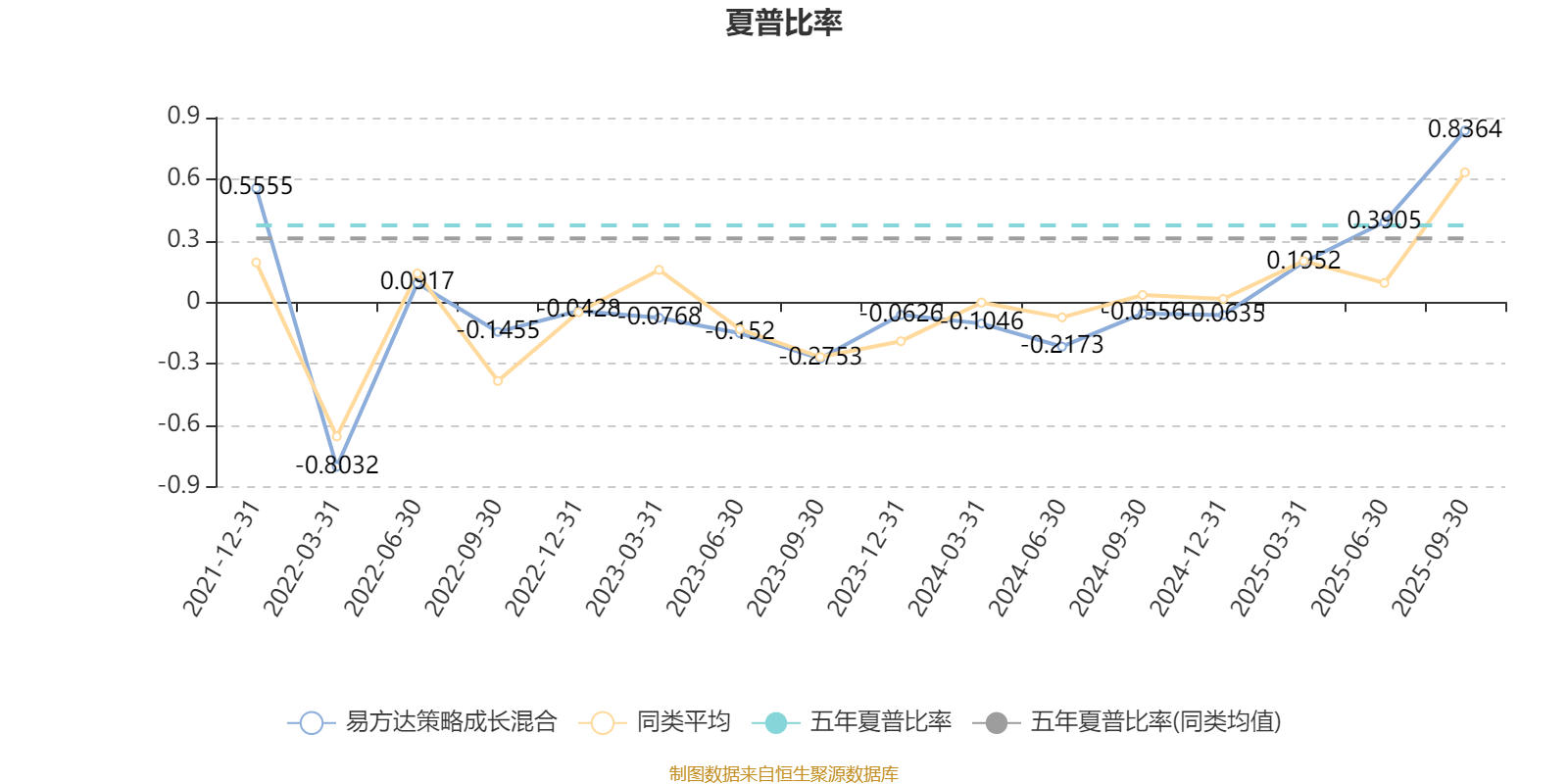 截至9月30日,基金近三年夏普比率为0.5933,位于同类可比基金549/1285。
