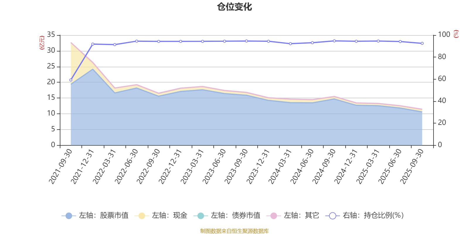 据定期报告数据统计,近三年平均股票仓位为93.99%,同类平均为87.62%。2024年三季度末基金达到94.76%的最高仓位,2021年三季度末最低,为59.26%。